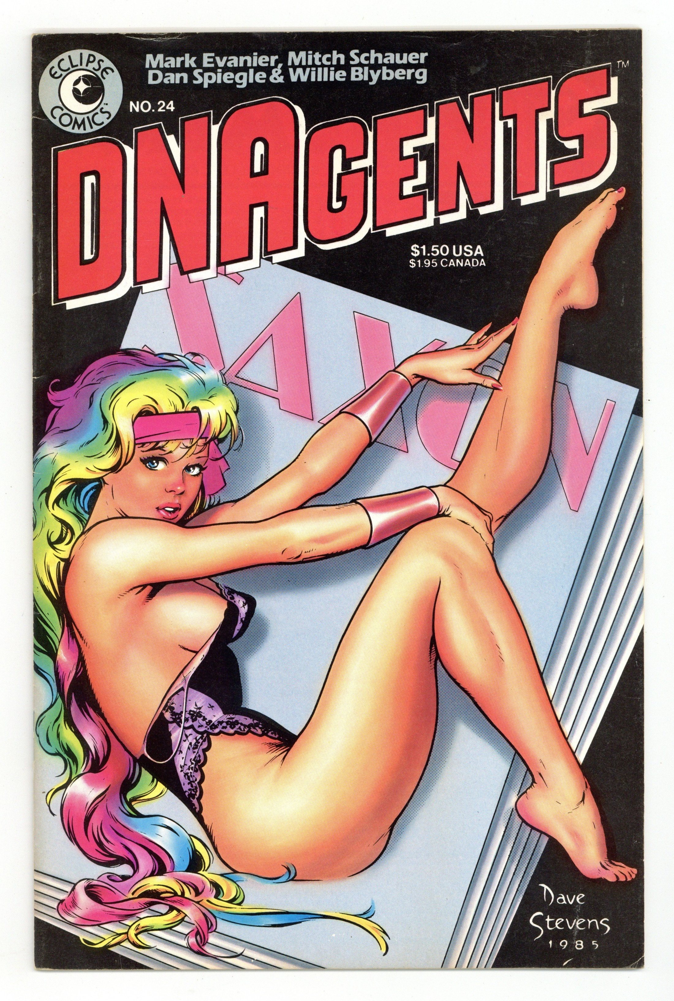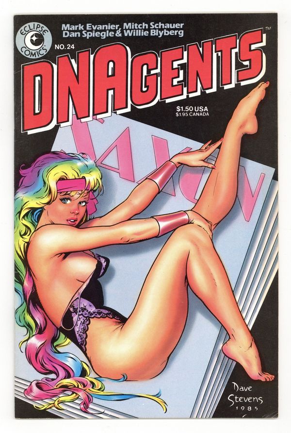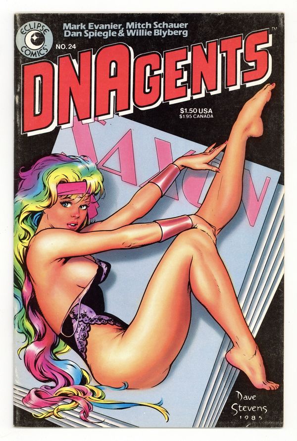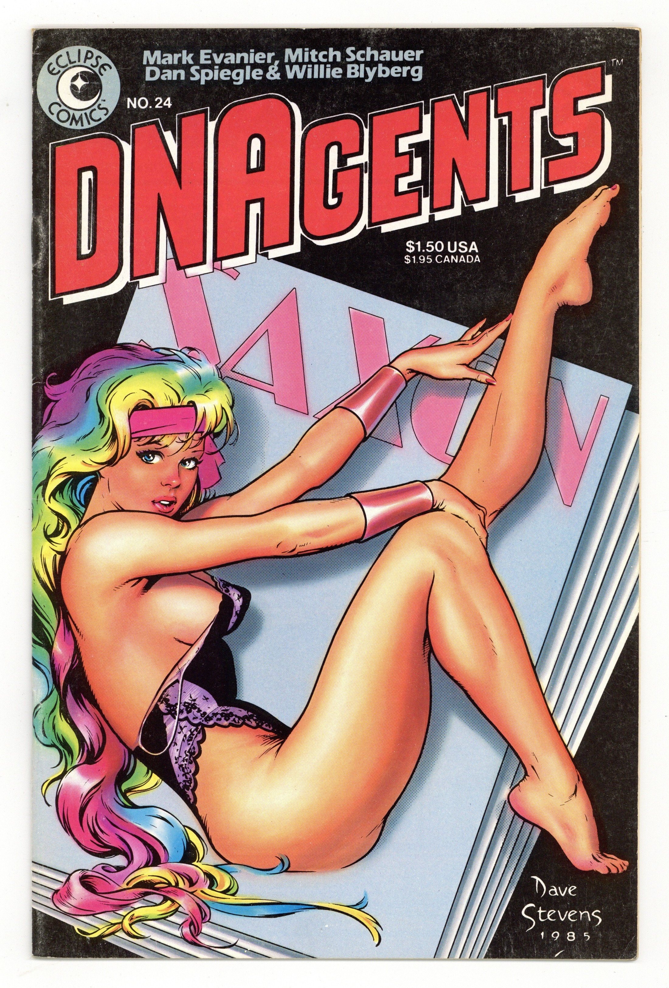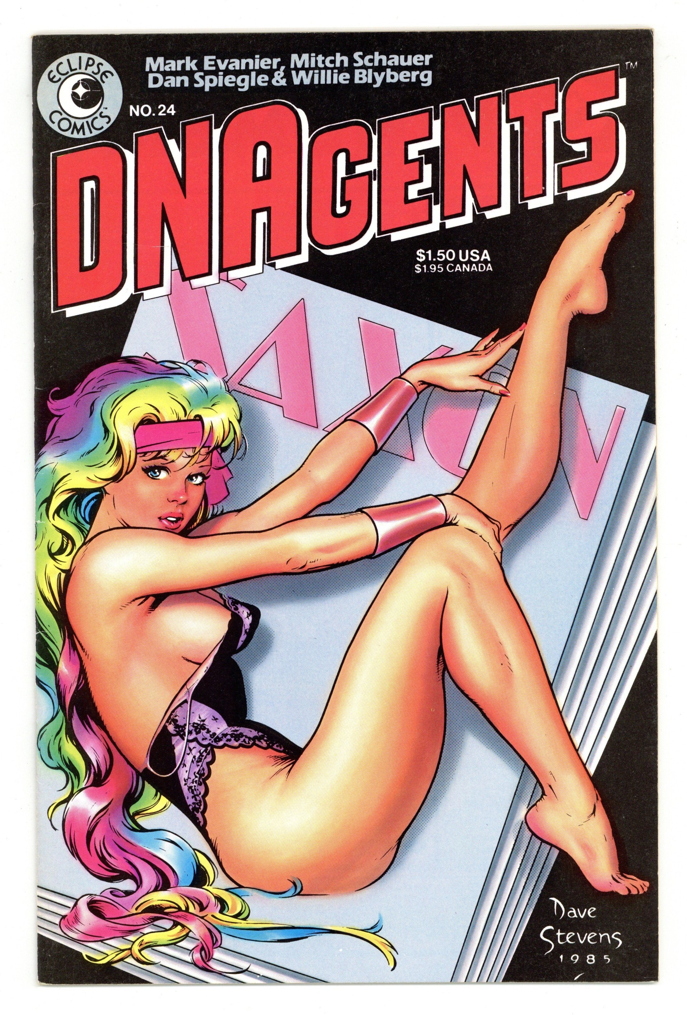 Cover by Dave Stevens. While the DNAgents, with Crossfire's help, try to track down the Detonator, a magazine publisher makes Rainbow a tempting offer in an untitled story. Script by Mark Evanier and art by Mitch Schauer, Willie Blyberg & Dan Spiegle. Cover price $1.50.