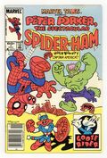 $23.50Newsstand Edition. 1st appearances of Spider-Ham, Hulk Bunny, Goose Rider and more. Cover by Steve Mellor. Written by Tom DeFalco and Steve Mellor. Art by Mark Armstrong, Steve Mellor and Joe Albelo. Captain Americat and Spider-Ham investigate a saboteur destroying a video arcade and run up against Hulk Bunny in "If He Should Punch Me!" by Tom DeFalco, Mark Armstrong and Joe Albelo. Characters in this story: Spider-Ham [Peter Porker]; Captain Americat; Hulk Bunny; J. Jonah Jackal; The Gopher Gang (villain); Masked Marauder (villain). Plus: "Goose Rider" back-up story by Steve Mellor. Characters in this story: Goose Rider; Chainsaw (villain). 32 pages, full color. Cover price $0.60.