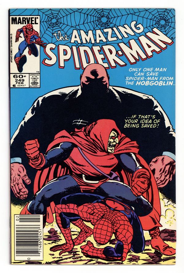 Newsstand Edition. "Secrets!" Part 1 of 3. Script by Roger Stern. Art by John Romita Jr. (breakdowns) and Dan Green (finishes). Cover by John Byrne. A mysterious individual is blackmailing the movers and shakers of New York City! And the group of victims includes Harry Osborn and J. Jonah Jameson! At the prestigious century club in Manhattan, the distinguished businessmen assemble to meet their tormentor...the Hobgoblin! The goblin plans to make his prey squirm in their seats! But there happens to be two other men relaxing at the club this afternoon...Mr. Wilson Fisk and Mr. Peter Parker! Perhaps better known as the Kingpin and the Amazing Spider-Man! Wow, is a three-way throw down about to erupt? Retelling of the Green Goblins origin. Cameo appearance by Mary Jane Watson. Flashback cameos by Norman Osborn and the Scorpion. (Note: This three-part story was reprinted in the 1992 trade paperback: The Origin of the Hobgoblin; and the 2011 trade paperback also titled: The Origin of the Hobgoblin.) 36 pgs. Cover price $0.60.