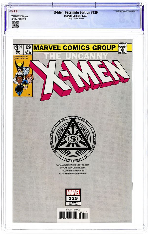 Comics Illuminati (Unknown Comics, Comic Traders, Anti-Hero Gallery, and The 616 Comics) Exclusive Virgin Cover by Nathan Szerdy. Written by Chris Claremont; John Byrne. Art by John Byrne. In one uncanny issue, the X-Men meet two of the most important mutants they will ever know! One will become one of the greatest X-Men of all - and the other will spend years as a bitter enemy before proving herself a hero. They're Kitty Pryde and Emma Frost, and their destinies are intertwined! In their first appearance, Frost - White Queen of the insidious Hellfire Club - seeks to persuade Pryde to join her Massachusetts Academy rather than Xavier's School. She's one headmistress who's strict about getting her own way - and the X-Men will soon learn just how strict! Meanwhile, the Hellfire Club's Jason Wyngarde exerts his influence over Jean Grey in the first chapter of the Dark Phoenix Saga! It's one of the all-time great Marvel comic books, boldly re-presented in its original form, ads and all! Reprinting X-MEN (1963) #129. 32 pages, full color. Rated T