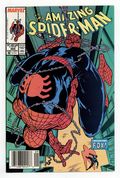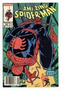 Newsstand Edition. "California Schemin'!" Part 1 of 2. Script by David Michelinie. Pencils by Todd McFarlane. Finishes by Joe Rubinstein. Cover by Todd McFarlane. The Daily Bugle publishes a book featuring Peter Parker's best photos of Spider-Man! And now the Bugle's ace photographer and Mary Jane are on their way to Los Angeles for the publicity tour! It should be all fun in the sun in the city of angels! But Peter's first promotional event at the L.A. civic center hits a snag when an old acquaintance shows up: the Black Fox! The wily fox steals a priceless chalice and the chase is on! Is the web-slinger ready for his Hollywood debut? Cameo appearances by Aunt May, J. Jonah Jameson, and the Prowler. First appearance of Jonathan Caesar. (Notes: The Black Fox previously appeared in Web of Spider-Man 15. The Amazing Spider-Man title was published bi-monthly for the next 5 issues.) 36 pgs. Cover price $1.00.