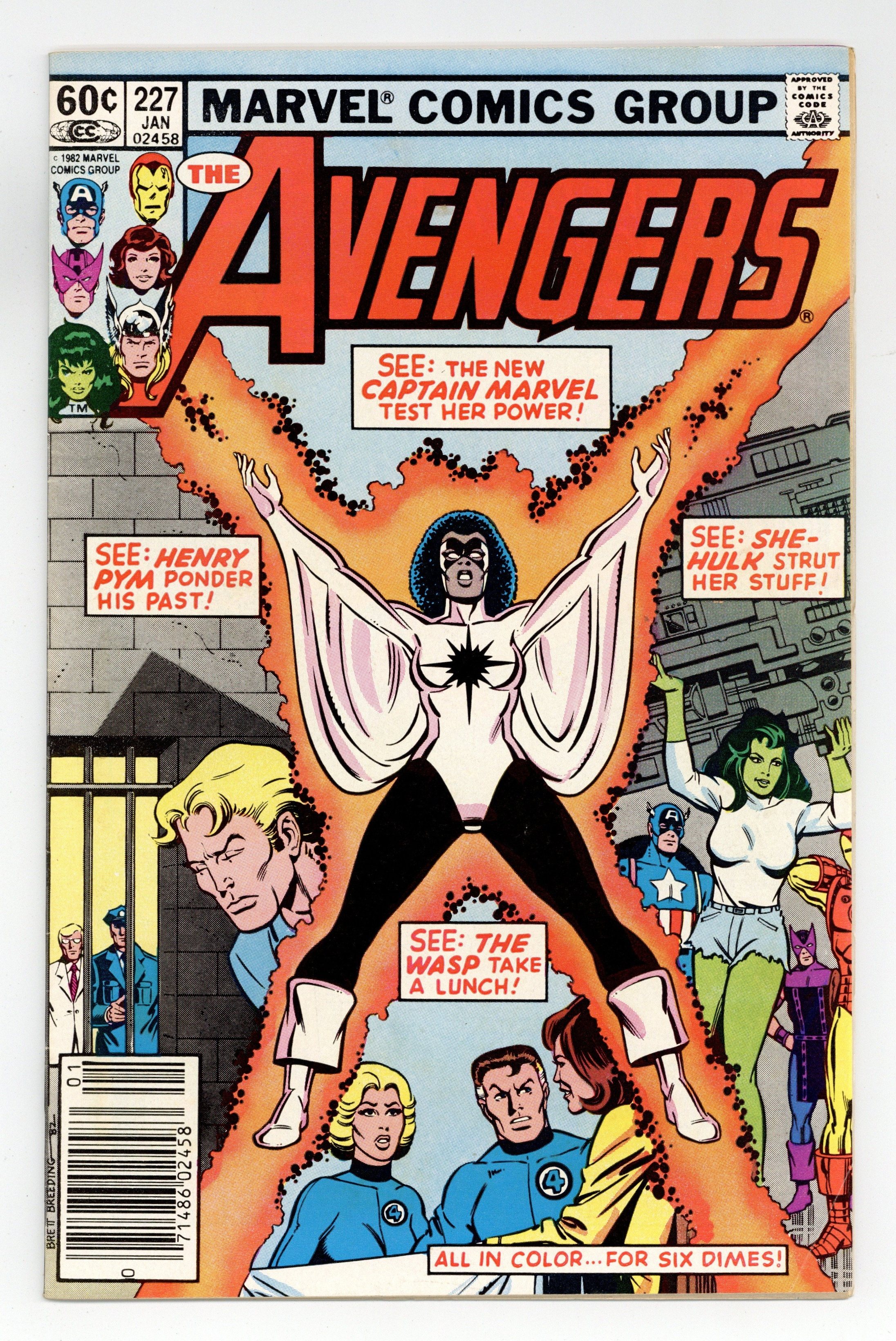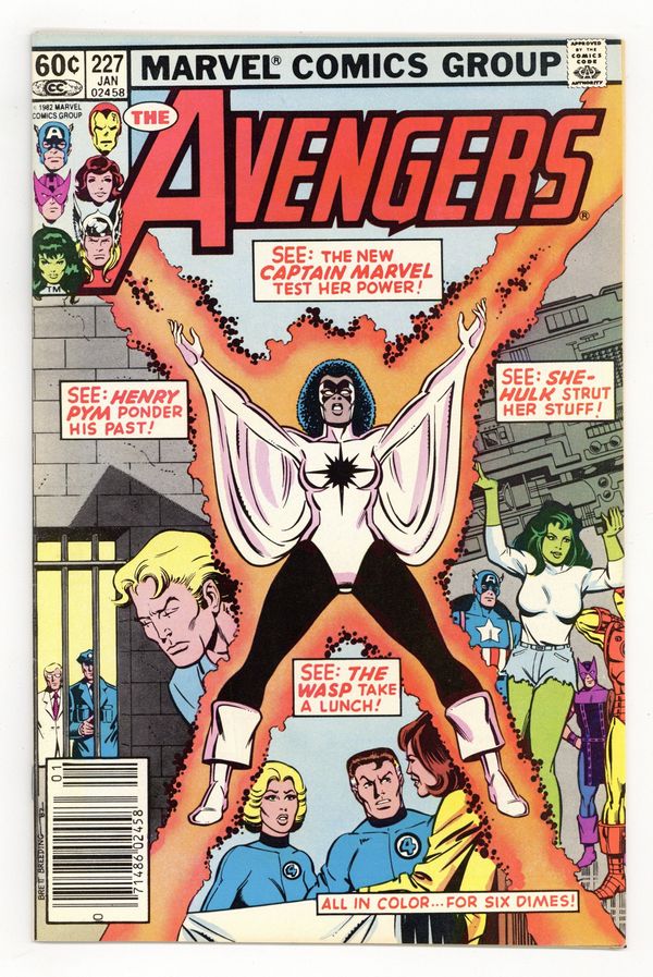 Tags: Avengers$9.50Newsstand Edition. 2nd appearance, the new Captain Marvel (aka Monica Rambeau). "Testing...1...2...3!" Script by Roger Stern. Pencils by Sal Buscema. Inks by Brett Breeding. Cover by Brett Breeding. After a quick test of her amazing powers, the Avengers offer membership to the new Captain Marvel (aka Monica Rambeau). Meanwhile at Ryker's Island, a psychiatrist visits Hank Pym to determine his fitness to stand trial for his crimes in Avengers 217. But as the former avenger prepares for his trial, Egghead gets ready for Hank's trial too! Everyone is headed to the courthouse next issue! Origin of Ant-Man, Giant-Man, Goliath, and Yellowjacket. Cameo appearances by the Plant-Man, Wizard, Mr. Fantastic, Invisible Girl, and Egghead. Flashback cameos by the Black Panther, Hulk, Scarlet Witch, Tigra, Ultron, Vision, and Wonder Man to recap the history of Henry Pym. Second appearance of the new Captain Marvel. Avengers Lineup: Captain America, Hawkeye, Iron Man, She-Hulk, Thor, and the Wasp. (Notes: Captain Marvel debuted in Amazing Spider-Man Annual 16. Roger Stern begins his 5-year run as the writer for the Avengers title. This issue features a two-page ad for the Spider-Man vs. Green Goblin Atari video game.) 36 pages Cover price $0.60.