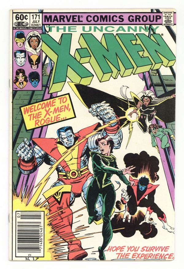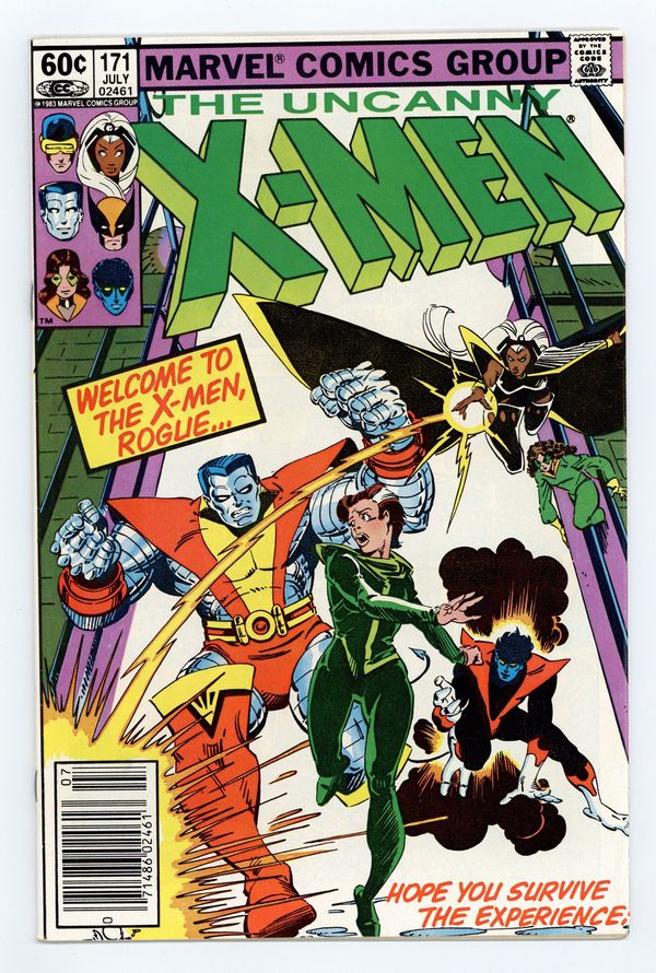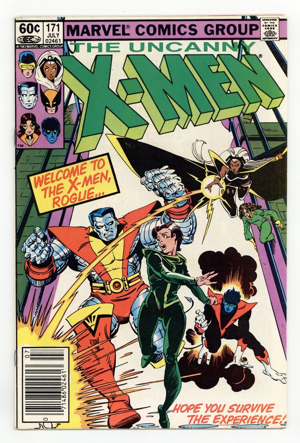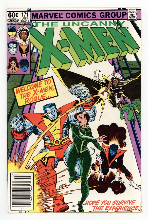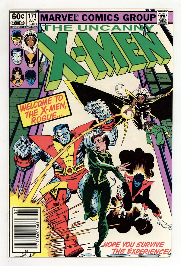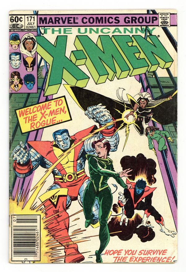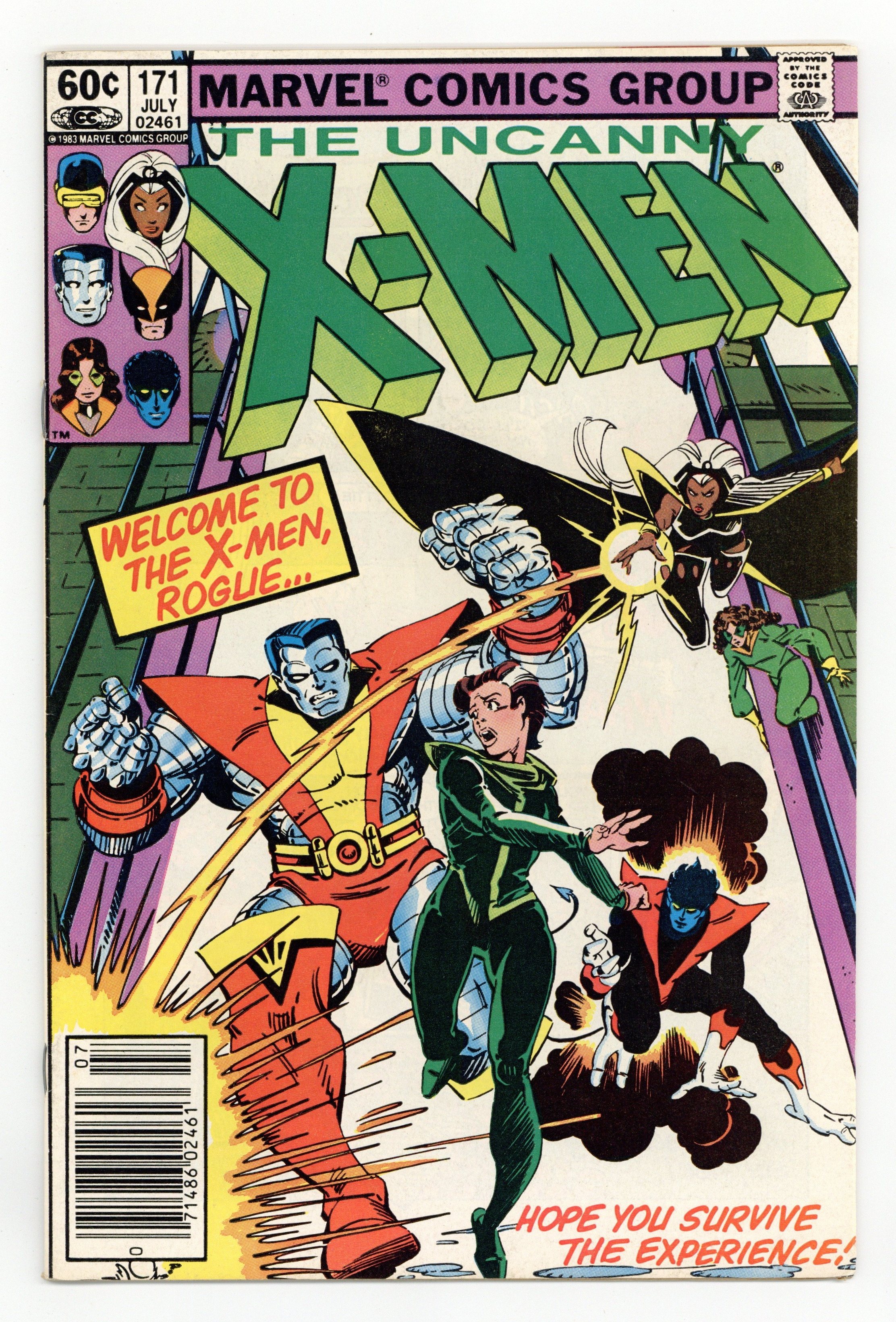 Newsstand Edition. "Rogue!" Guest-starring Binary. Story by Chris Claremont. Art by Walt Simonson and Bob Wiacek. Rogue has left the Brotherhood of Evil Mutants and arrives at the doorstep of Xavier's Institute seeking sanctuary and help from her erstwhile enemies, the X-Men. However, not everyone is prepared to welcome her with open arms, as the immensely powerful Binary returns for a little payback. Plus, Scott learns a peculiar secret about Madelyne. Cover price $0.60.