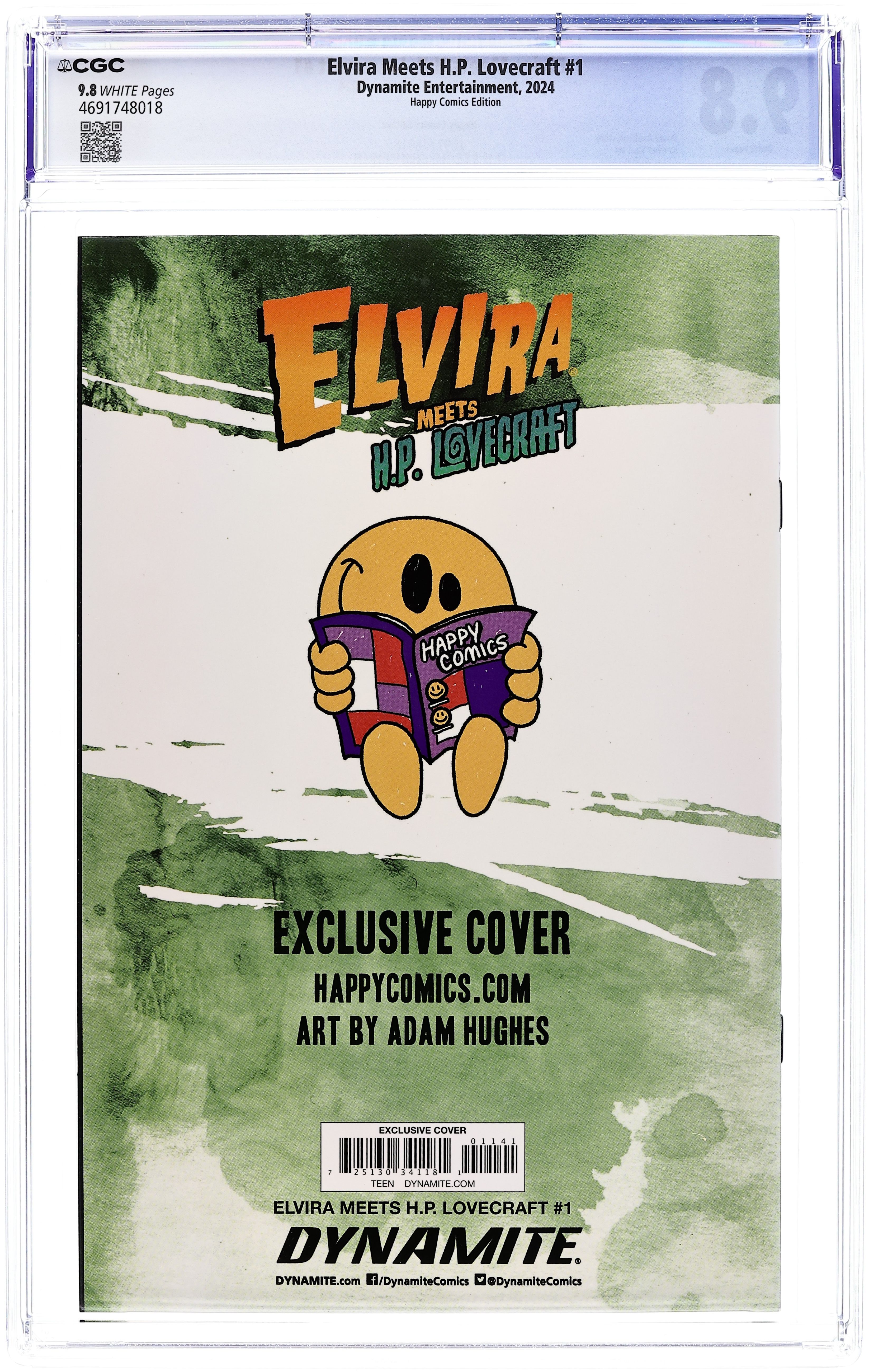 Happy Comics Exclusive Virgin Cover by Adam Hughes. Written by David Avallone. Art by Kewber Baal. It had to happen someday! Elvira accepts the Collect Call of Cthulhu and finds herself on a comical quest for the last copy of the Necronomicon with the ghost of H.P. Lovecraft. Will she be able to tolerate Lovecraft long enough to save the world from the Great Old Ones? 32 pages, full color. Rated T+