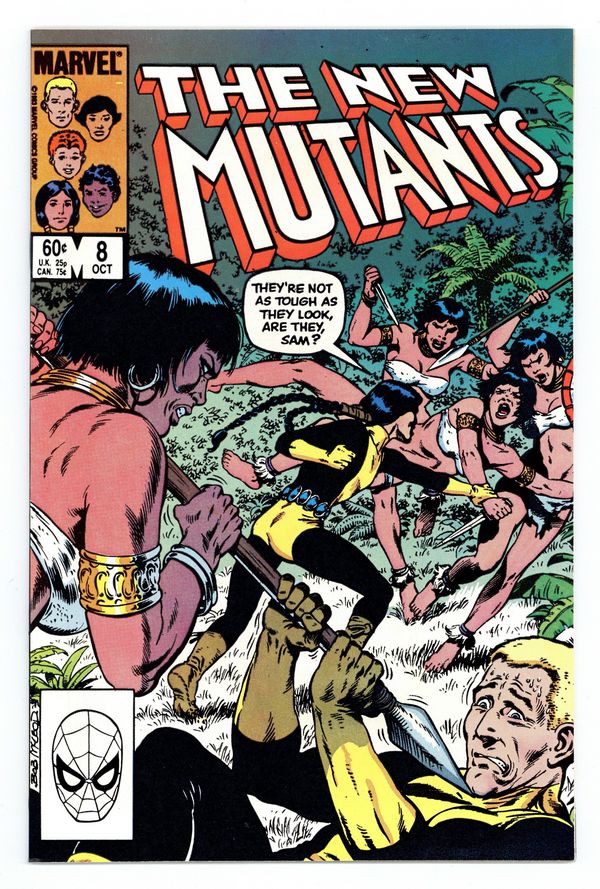 Bubblicious Insert Included. Cover art by Bob McLeod. The Road to . . . Rome?, script by Chris Claremont, pencils by Sal Buscema, inks by Bob McLeod; The New Mutants and Sunspot's mother, journeying down the Amazon River, are attacked by natives; Cannonball captures one, who turns out to be not what she seems; their ship is destroyed, and they are captured by -- Romans?!? 36 pgs. $0.60. Cover price $0.60.