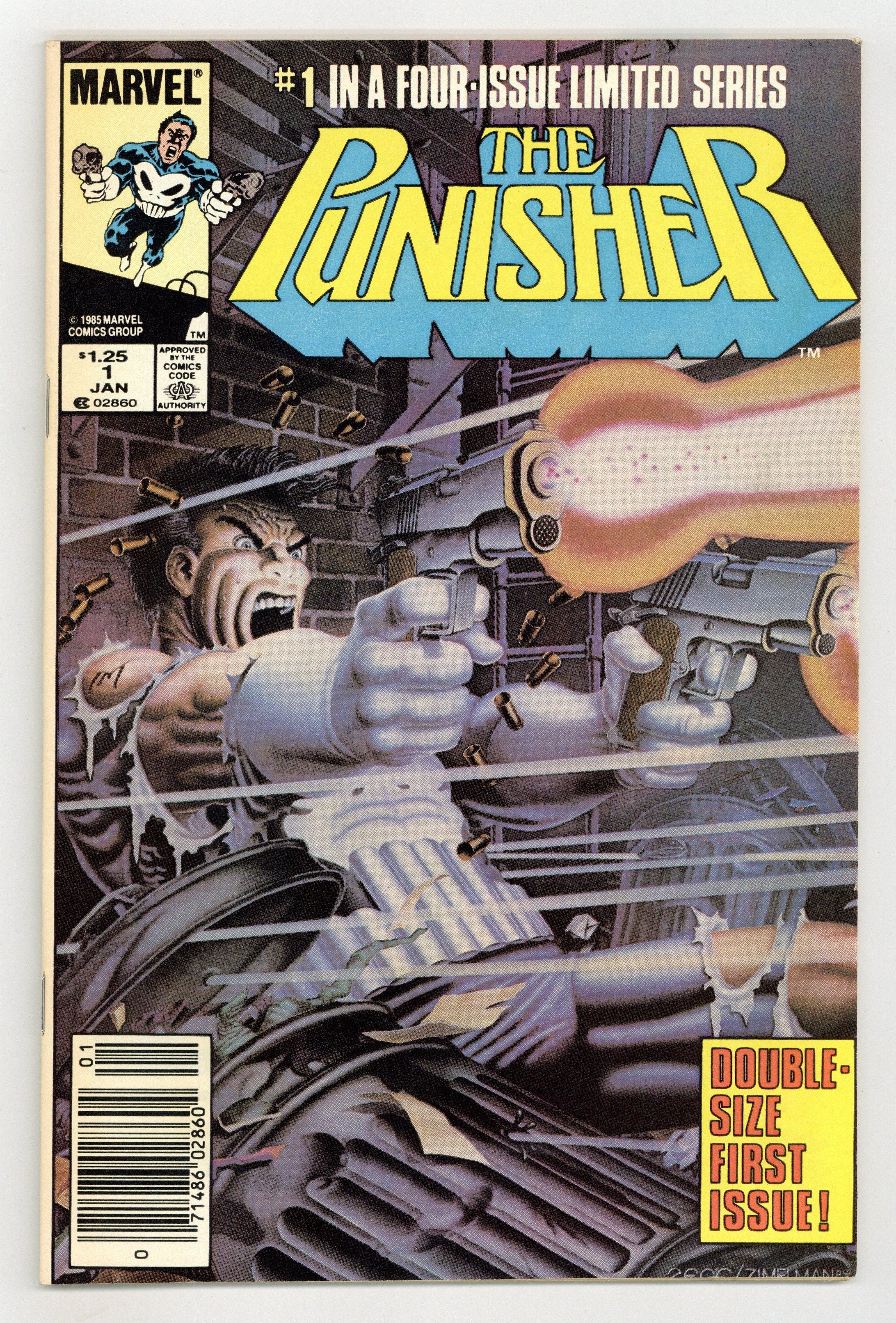 Ends Feb 23 8:59 PM CST Bid History 10 bids Current Bid $56 Your Secret Max Bid If you'd like to bid, please log in or register. Newsstand Edition. "Circle of Blood!" Story by Steven Grant. Art by Mike Zeck and John Beatty. Cover by Mike Zeck and Phil Zemelman. After a drug-induced bloody rampage, Frank Castle finds himself behind bars. When he discovers his old enemy Jigsaw, a criminal with a severely scarred face, is responsible, the Punisher sets out to do what he does best. Cover price $1.25.