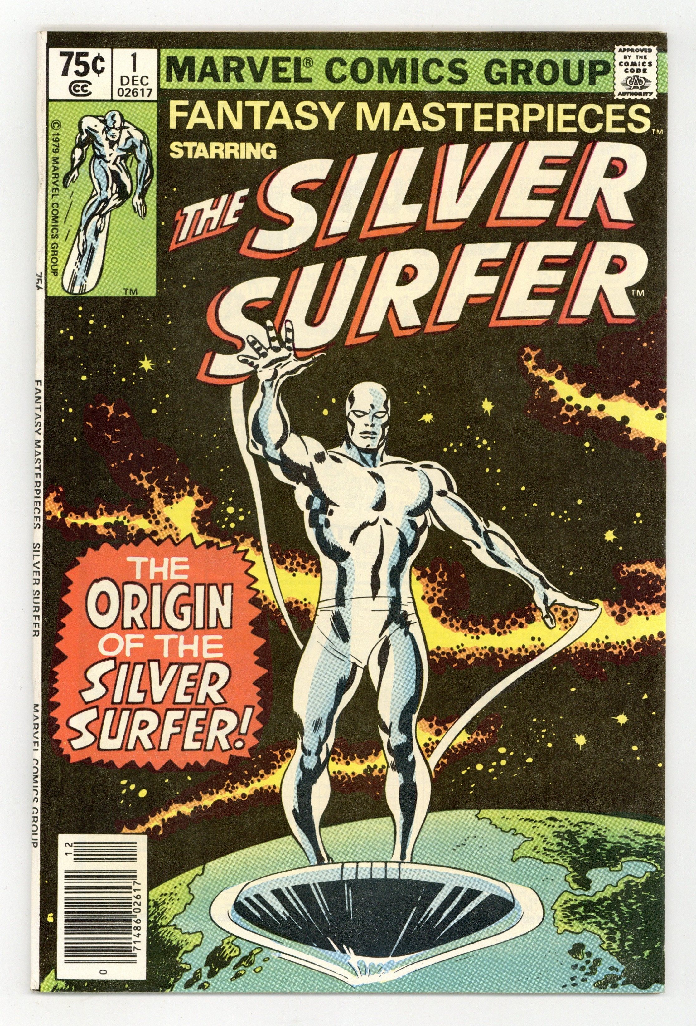$28.50Newsstand Edition. Reprints Silver Surfer (1969 1st Series) #1. "The Origin of the Silver Surfer!" Cameos by the Incredible Hulk, Doctor Doom, and the Fantastic Four. Written by Stan Lee. Art by John Buscema and Joe Sinnott. Many years ago, in order to prevent the total annihilation of his civilization and homeworld, Norrin Radd bargained with the Devourer of Worlds. Imbued with the Power Cosmic, he became the Silver Surfer and Herald of Galactus. However, on the fateful day he arrived on Earth, for love of humanity, he betrayed his master, and thus was cursed to never traverse the space-ways again. This is his story. Cover price $0.75.
