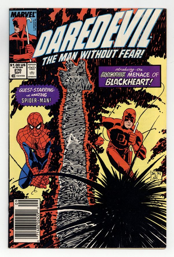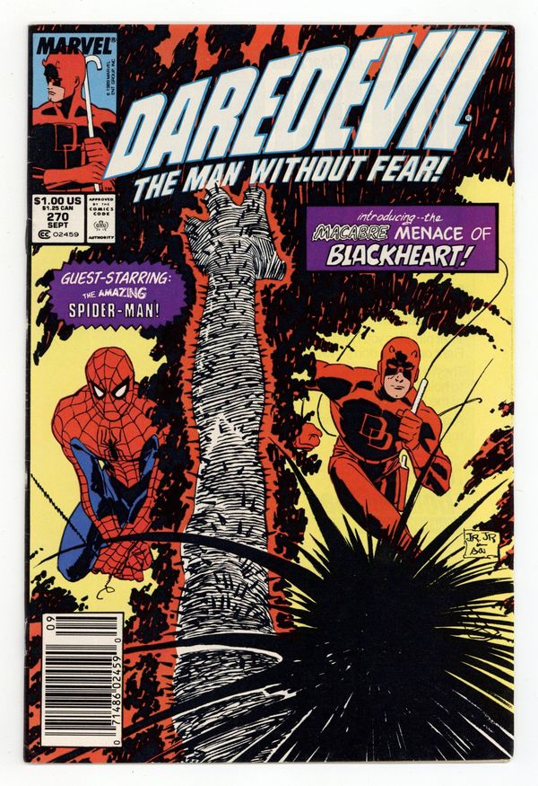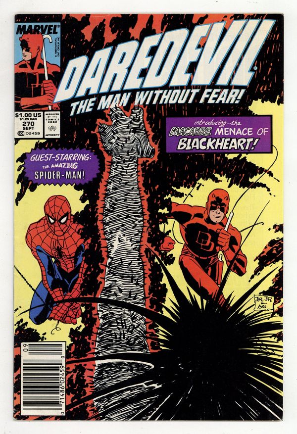 $17.50Newsstand Edition. Cover pencils by John Romita, Jr., inks by Al Williamson. 1st appearance of Blackheart (the son of Mephisto) in Blackheart!, script by Ann Nocenti, pencils by John Romita, Jr., inks by Al Williamson; On a hill of humanity's evil, Blackheart is born and DD and Spider-Man have to fight like the devil to take him down; Mephisto appearance. First $1.00 cover price. 36 pgs. Cover price $1.00. Cover price $1.00.