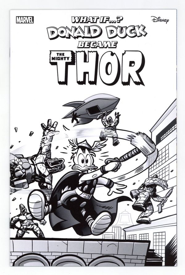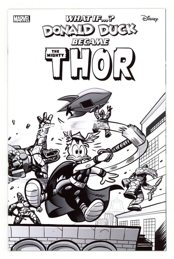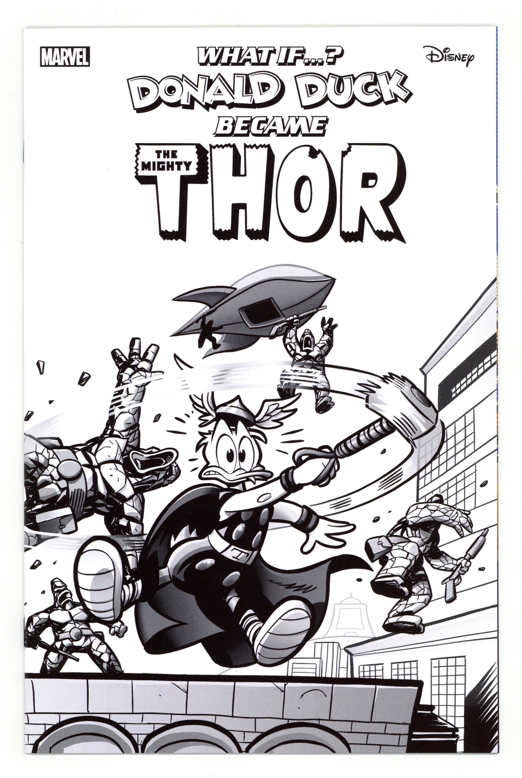 Tags: Donald Duck, Thor$41.00Limited 1 for 100 Retailer Incentive Variant Cover. Written by Riccardo Secchi. Art by Giada Perissinotto. Cover by Lorenzo Pastrovicchio. IS THIS FOWL WORTHY OF THE HAMMER OF THOR?! When DONALD DUCK chaperones HUEY, DEWEY AND LOUIE on an archaeological trip to search for ancient Viking artifacts, he finds more than he bargained for when he comes across the STONE DUCKS FROM SATURN preparing for an invasion. But everything changes when he discovers an enchanted cane that causes an egg-ceptional transformation, gifting him with the POWER OF THOR! Can he learn how to use his new abilities in time to save DUCKBURG before he changes back? Find out in this mind-twisting retelling of THE MIGHTY THOR'S THUNDEROUS ORIGIN! 32 pages, full color. Cover price $4.99.