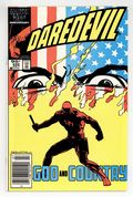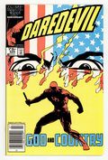 $22.00Newsstand Edition. Cover art by David Mazzucchelli. God and Country starring Daredevil, Karen Page, Foggy Nelson, Glorianna O'Breen, Ben Urich, Kingpin, and Nuke [Sgt. Simpson] (1st), script by Frank Miller, art by David Mazzucchelli; Matt helps Karen kick her drug habit; Kingpin hires a deranged Super Soldier to go after DD; part 6 of critically acclaimed Born Again storyline. 36 pgs. Cover price $0.75. Cover price $0.75.