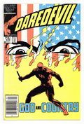 $20.00Newsstand Edition. Cover art by David Mazzucchelli. God and Country starring Daredevil, Karen Page, Foggy Nelson, Glorianna O'Breen, Ben Urich, Kingpin, and Nuke [Sgt. Simpson] (1st), script by Frank Miller, art by David Mazzucchelli; Matt helps Karen kick her drug habit; Kingpin hires a deranged Super Soldier to go after DD; part 6 of critically acclaimed Born Again storyline. 36 pgs. Cover price $0.75. Cover price $0.75.