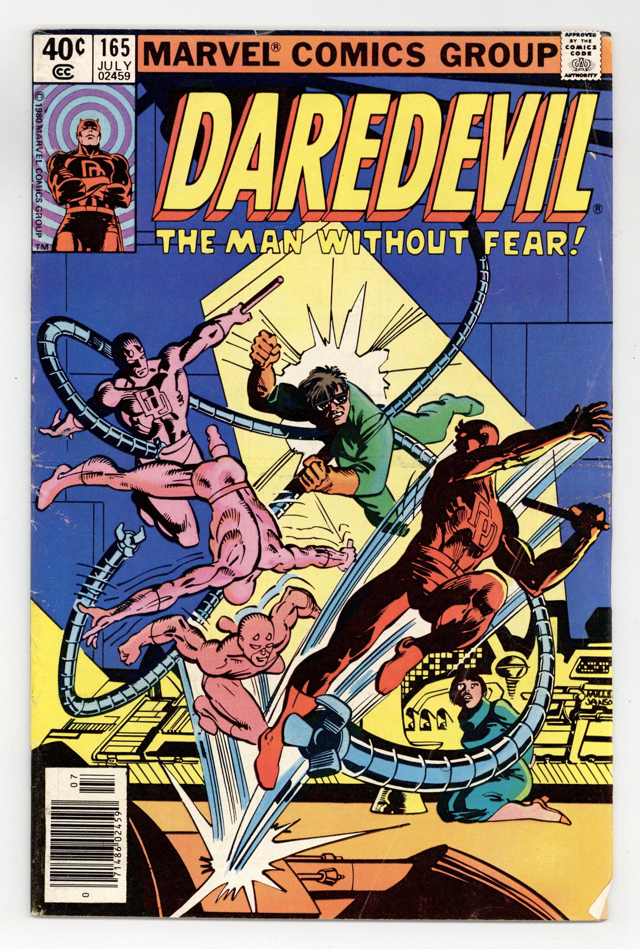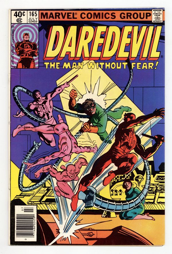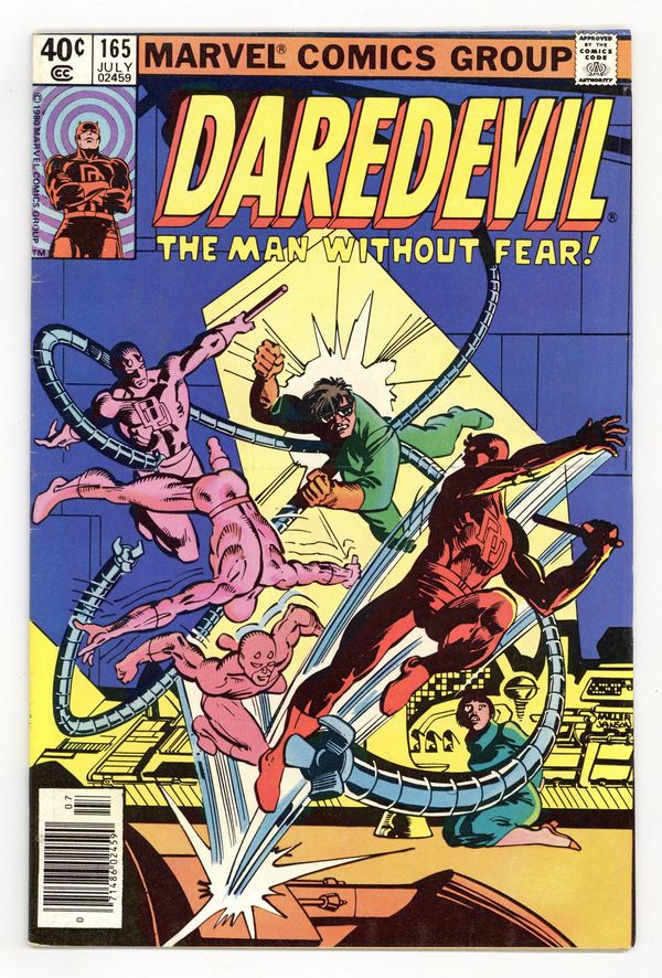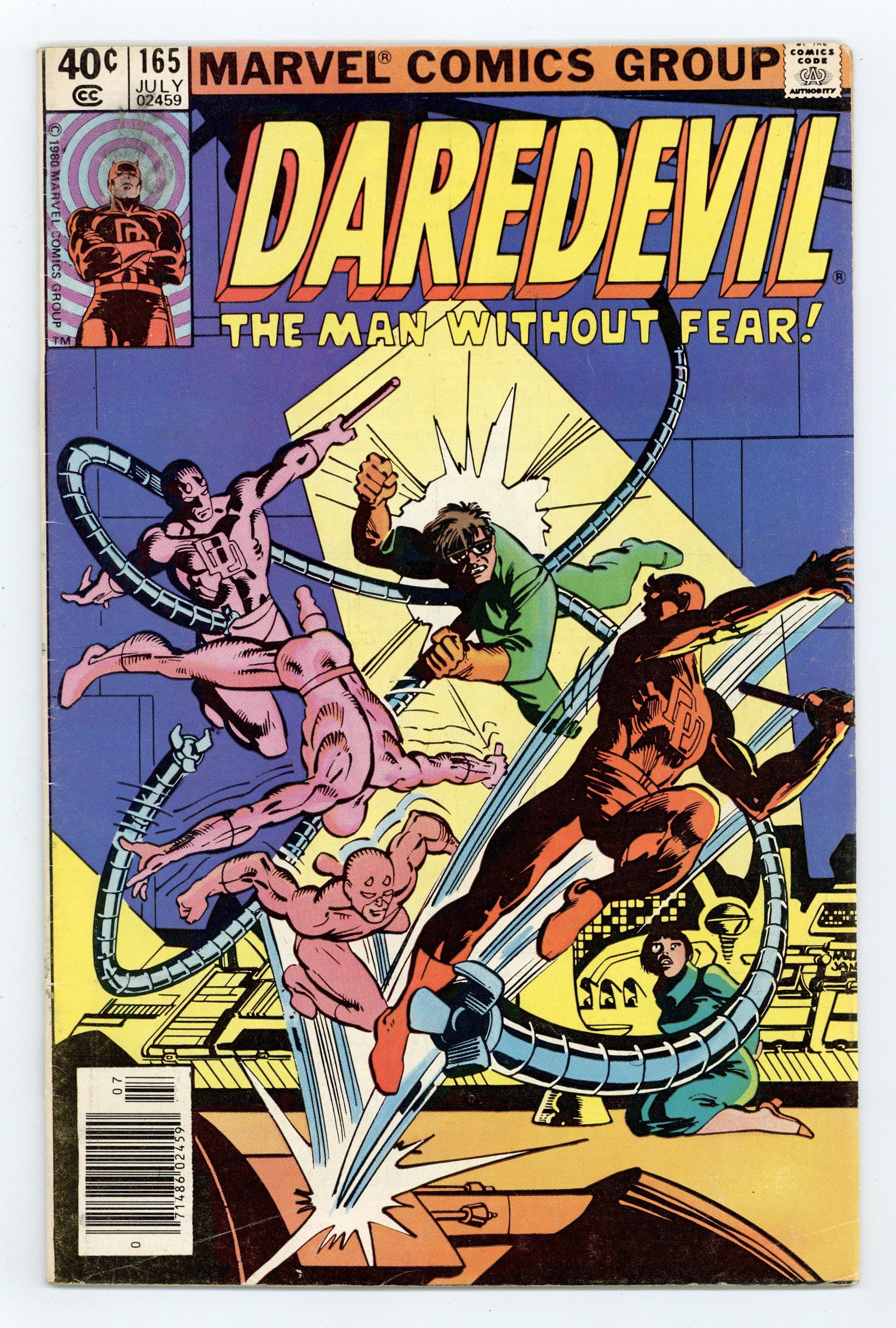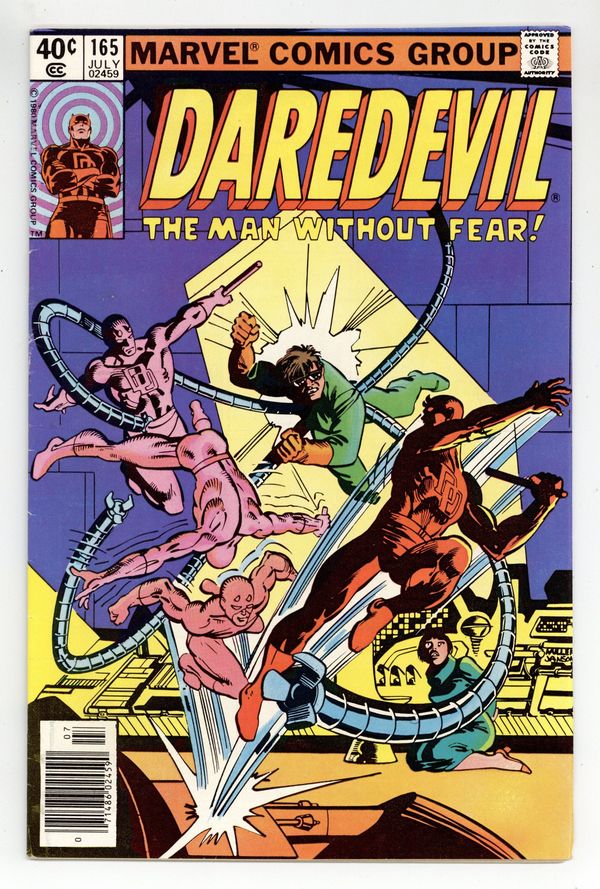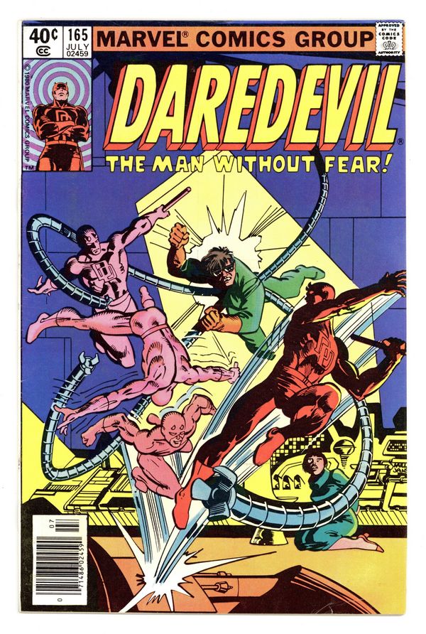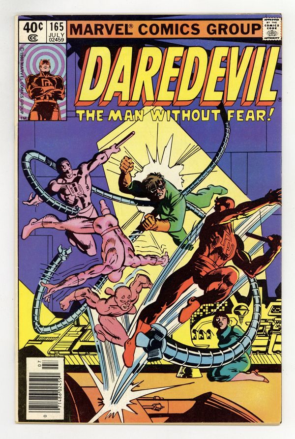 Newsstand Edition. Cover pencils by Frank Miller, inks by Klaus Janson. Arms of the Octopus, script by Frank Miller (plot) and Roger McKenzie (plot, script), pencils by Frank Miller, inks by Klaus Janson; Heather finds out that her company is doing business with Doctor Octopus, and DD has to come to her rescue when she is captured; The Black Widow realizes her relationship with Matt is through and leaves New York. Last 40-cent cover price. 36 pgs. Cover price $0.40. Cover price $0.40.