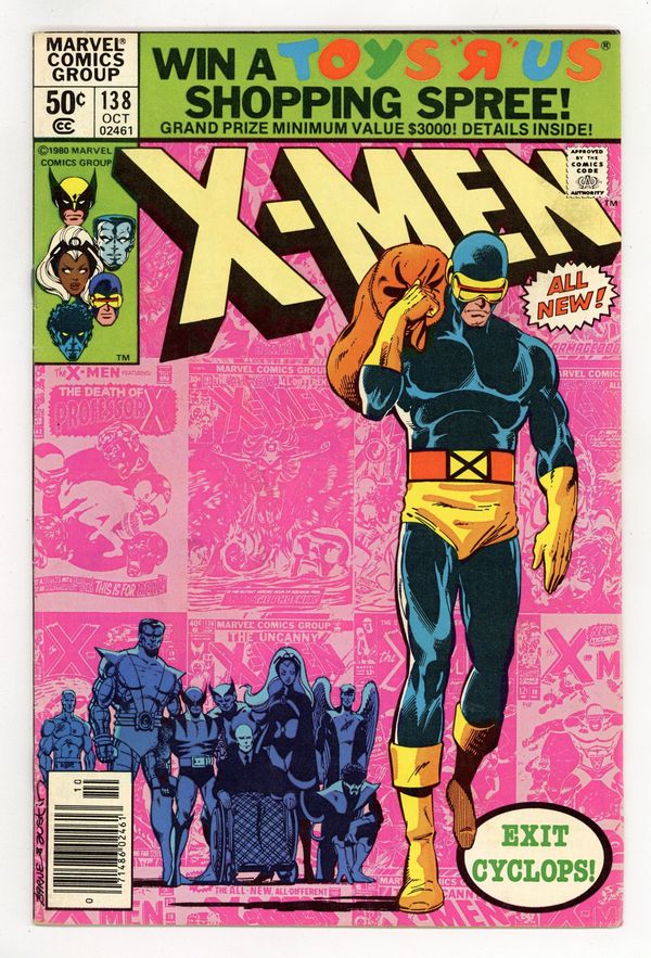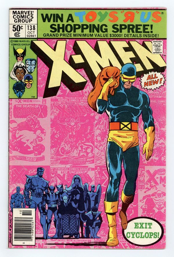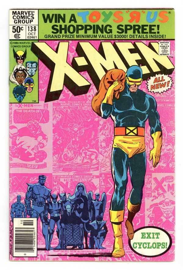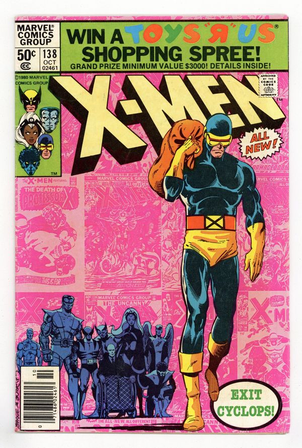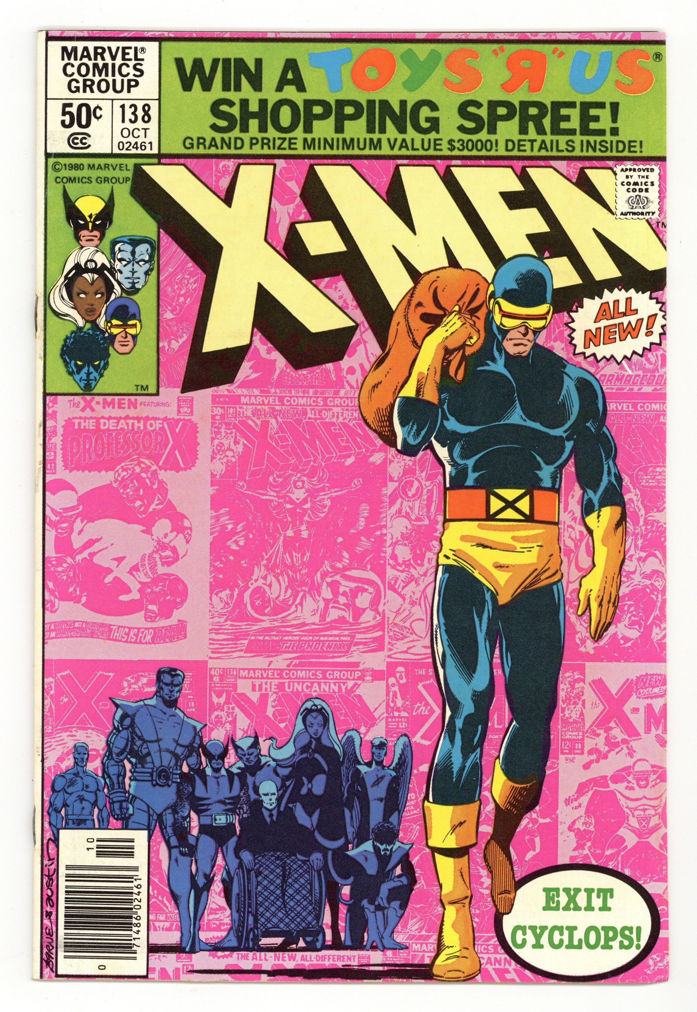 Newsstand Edition. "Elegy!" Story by Chris Claremont and John Byrne. Art by John Byrne and Terry Austin. In the tragic aftermath of last issue's stunning events, the X-Men bury one of their own. Scott relives the history of X-Men and reflects. Overcome with grief, Cyclops decides to leave the X-Men. The team is forced to push on without their heart, Jean Grey, and their soul, Scott Summers. As one member leaves a new member shows up. Featuring flashback appearances by Magneto and the Brotherhood of Evil Mutants, Ka-Zar, the Stranger, Juggernaut, Master Mold and the Sentinels, Count Nefaria, Plant Man, Eel, Porcupine, the Living Laser, the Super-Adaptoid, Mimic, Cobalt Man, Spider-Man, Doctor Strange, Mole Man, Tyrannus, Grotesk, Mesmero, the Living Monolith, Sauron, Sunfire, Krakoa, the Ani-Men, Black Tom Cassidy, the Shi'ar Imperial Guard, Alpha Flight, Garokk the Petrified Man, Moses Magnum, Arcade, Jason Wyngarde/Mastermind, Proteus, the Hellfire Club, and the Dark Phoenix. 36 pgs. Cover price $0.50.