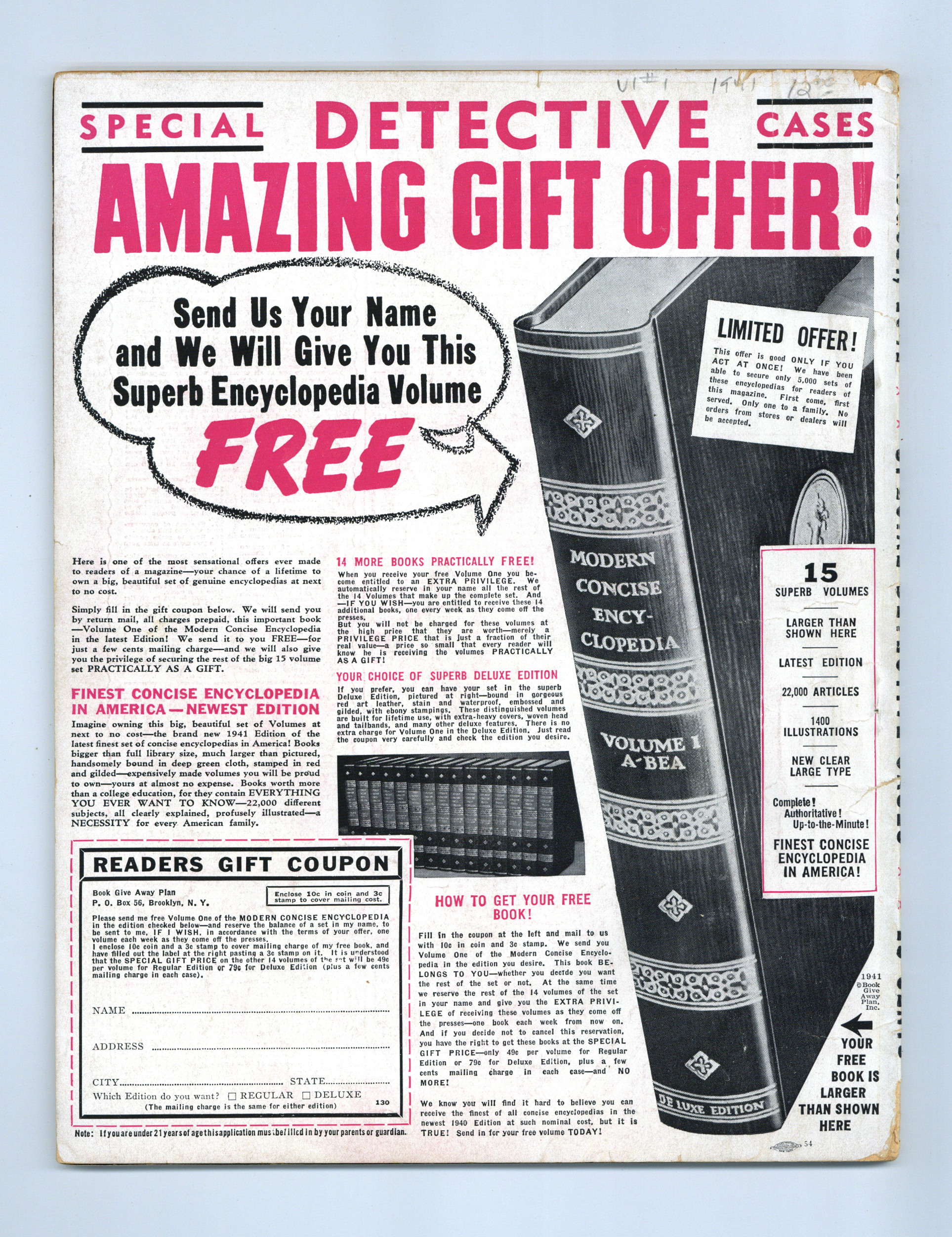 Published Aug 1941 by Magazine House Inc..$33.00- Front cover detached 40%. Back cover detached 10%. Staple rust: Slight.