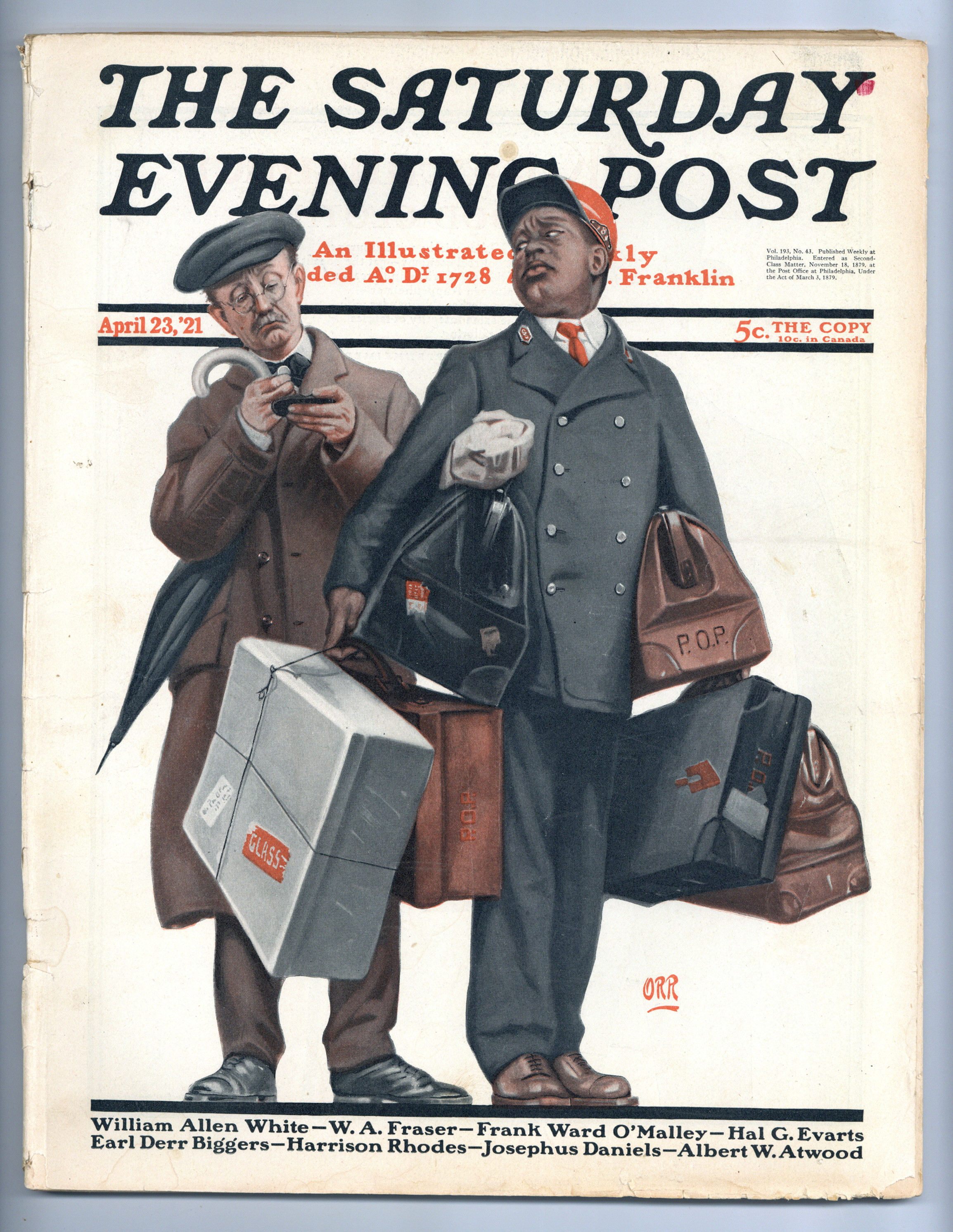 Tags: Anthology / CollectionPublished Apr 1921 by Curtis Publishing Co..$91.00The classic magazine featuring current event articles, editorials, human interest pieces, humor, illustrations, a letter column, poetry, single-panel gag cartoons, and stories by the leading writers of the time. 11 1/4-in. x 14 1/4-in., 112 pages, B&W. Cover price $0.05.