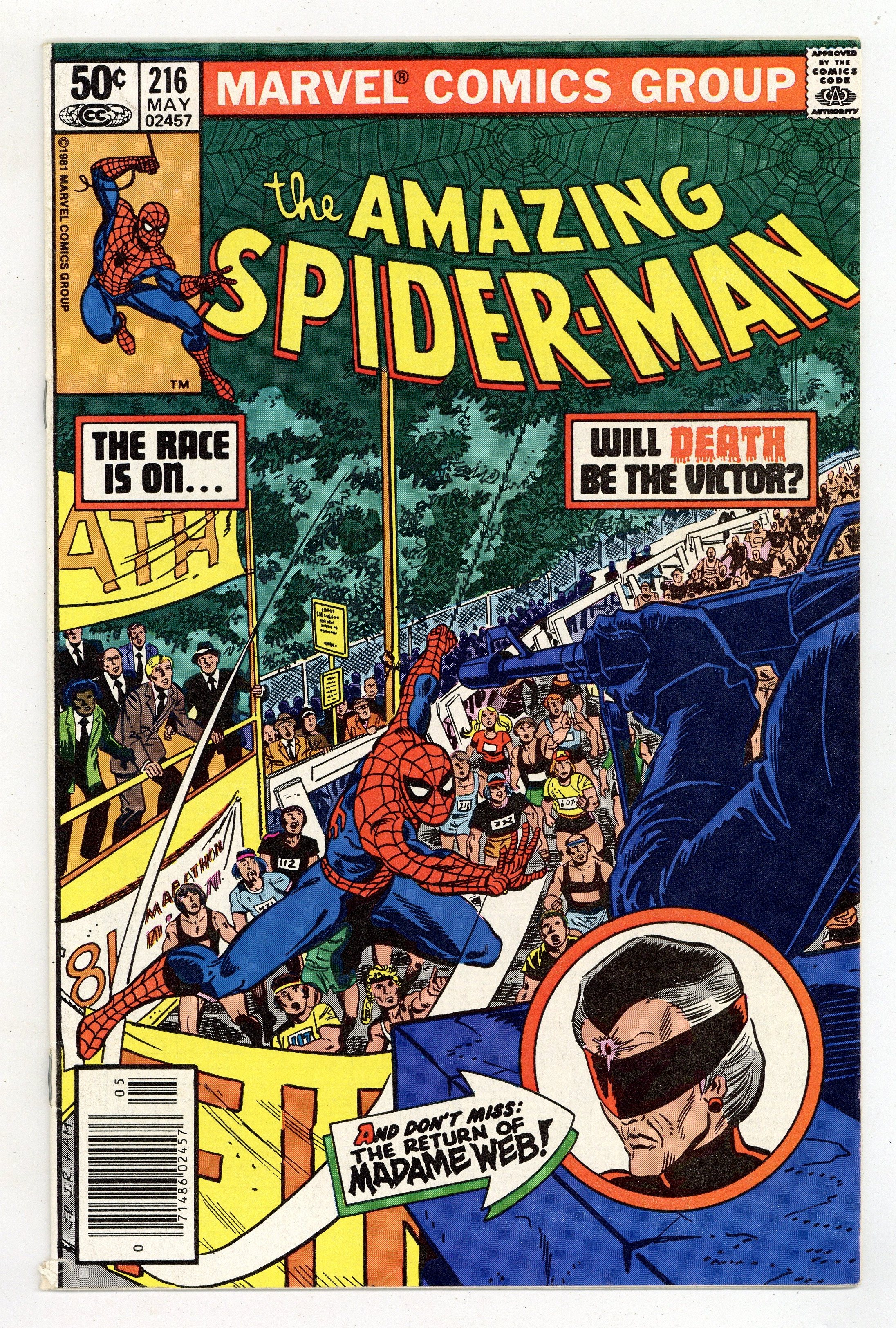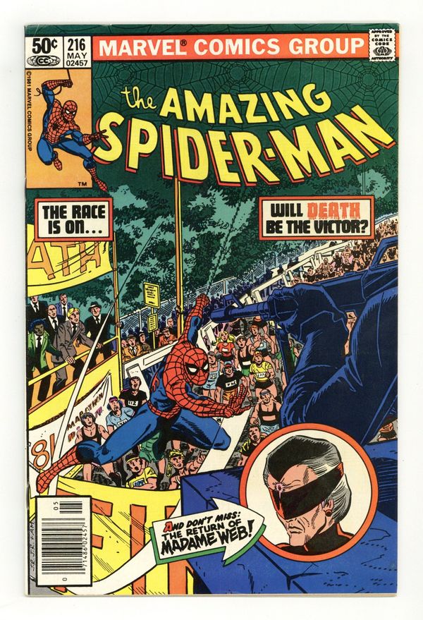 Newsstand Edition. "Marathon" Script by Denny O'Neil. Art by John Romita Jr. (breakdowns) and Jim Mooney (finishes). Cover by John Romita Jr. and Al Milgrom. It's time for the annual New York City marathon! And this year's race has a special guardian angel...the Amazing Spider-Man! After the web-slinger hears about a possible assassination attempt during the event, he decides to follow the race for the full 26 miles! But there are over 15,000 runners participating! How will Spidey know who is the intended target? Enter Madame Web! With help from his clairvoyant friend, the wall-crawler zeroes in on the sniper; while the runners zero in on the finish line! Cameo appearances by Aunt May, Nathan Lubensky, and J. Jonah Jameson. (Notes: Madame Web appears next in Amazing Spider-Man 229. This issue includes a full-page ad for the first issue of the Dazzler series.) 36 pages. Cover price $0.50.