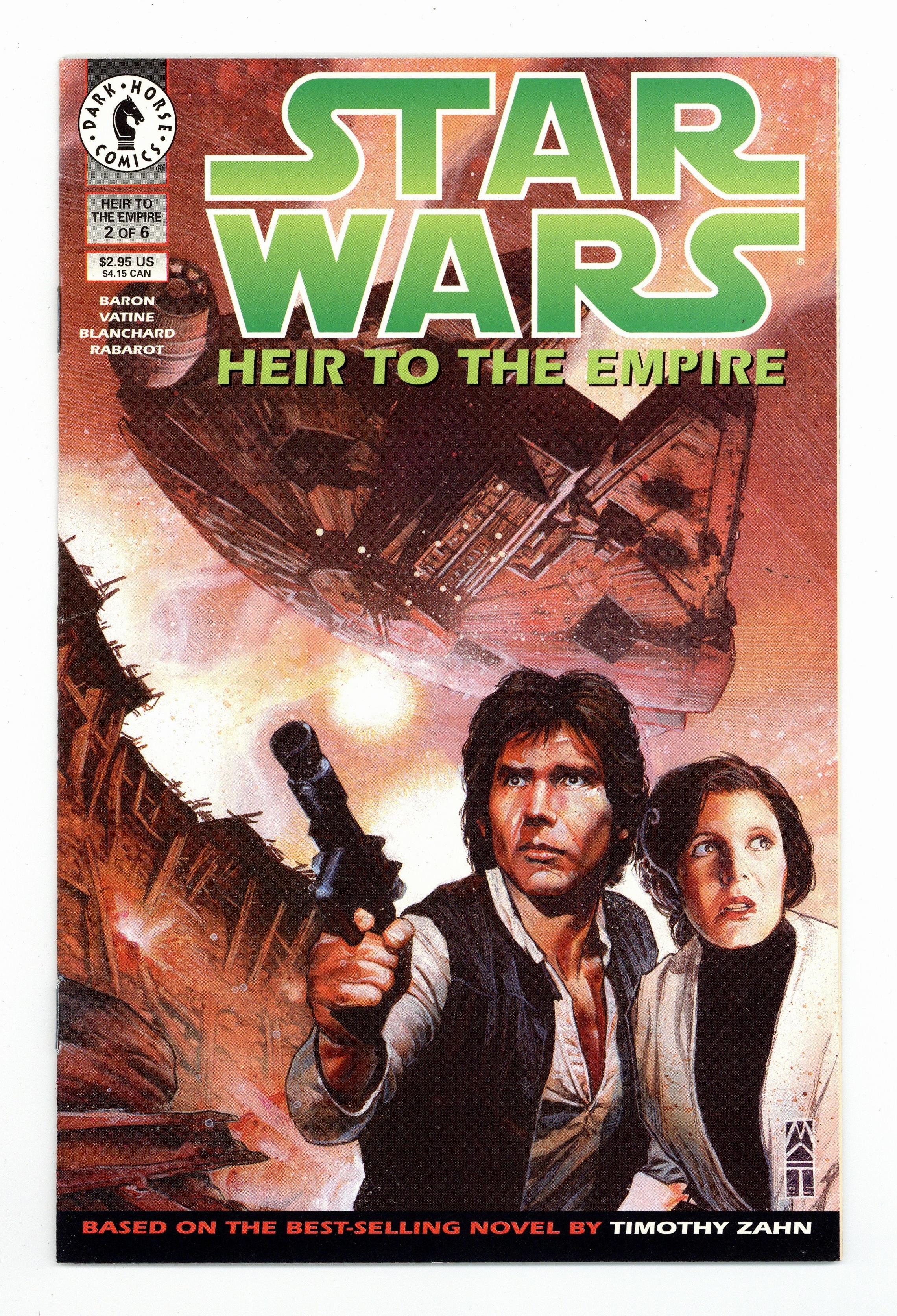 Written by Mike Baron. Art by Olivier Vatine and Fred Blanchard. Cover by Mathieu Lauffray. Five years after the Empire's defeat in Return of the Jedi, the forces of the Empire have rallied. Even as Luke Skywalker searches for Jedi to join him in the inevitable battle, Grand Admiral Thrawn, the last of the Emperor's warlords, schemes with Joruus C'Baoth to end the battle before it can begin. Out-manned, out-numbered, and sorely out-gunned, Luke fears there is no hope. It's up to him to challenge Thrawn, the heir to the Empire. 32 pages, FC. Cover price $2.95.