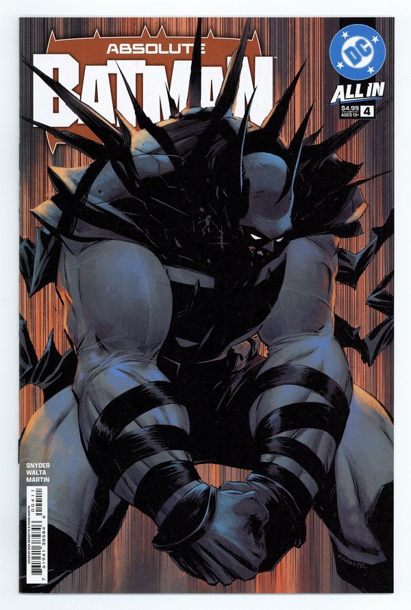 Starts May 25 Written by Scott Snyder. Art by Gabriel Walta. Cover by Nick Dragotta. Absolute Batman has established himself as an extremely large force to be reckoned with. But how did he get to this point? How did he push himself? And how did the tragic events of his childhood, and the advice of his father, shape the man who he became...literally? Guest artist Gabriel Walta joins for this essential origin issue of Absolute Batman to explore Bruce Wayne's past, and his inevitable future to go BIGGER. Don't miss this pivotal issue! 28 pages, full color. Rated T+ Cover price $4.99.