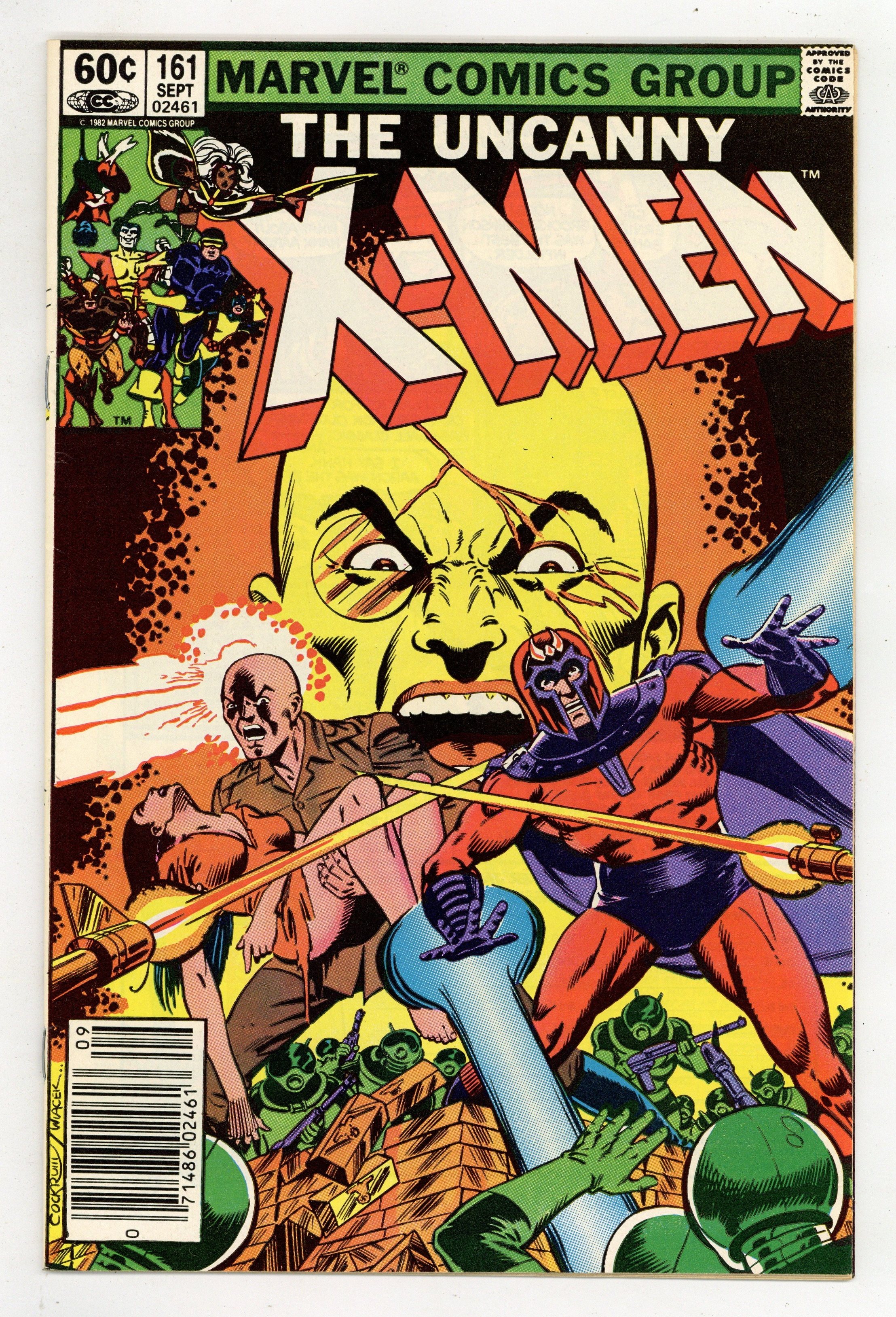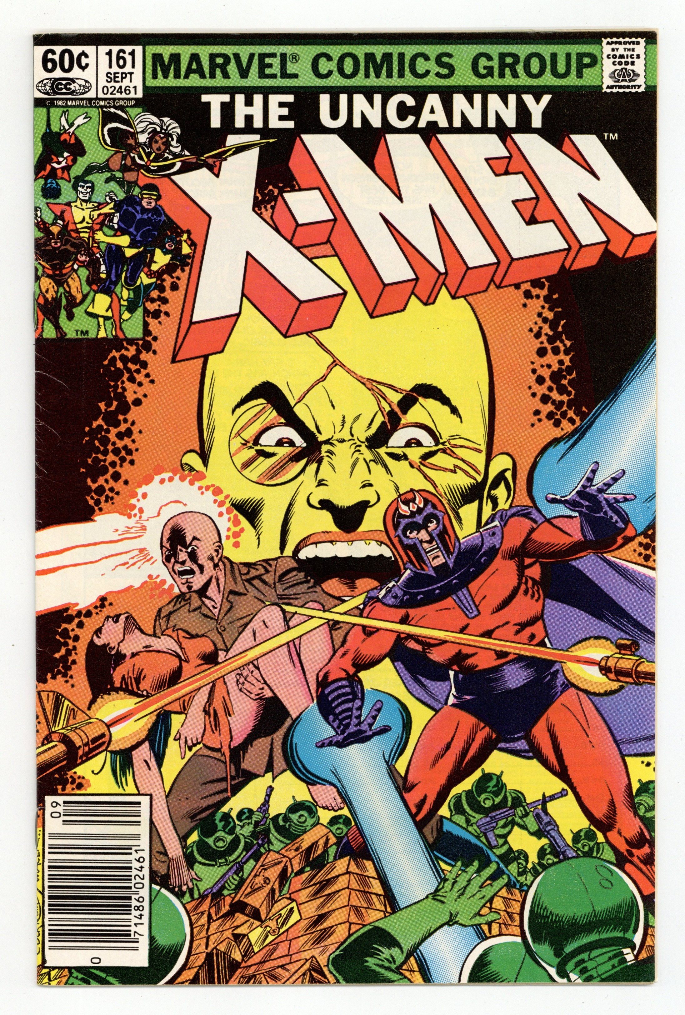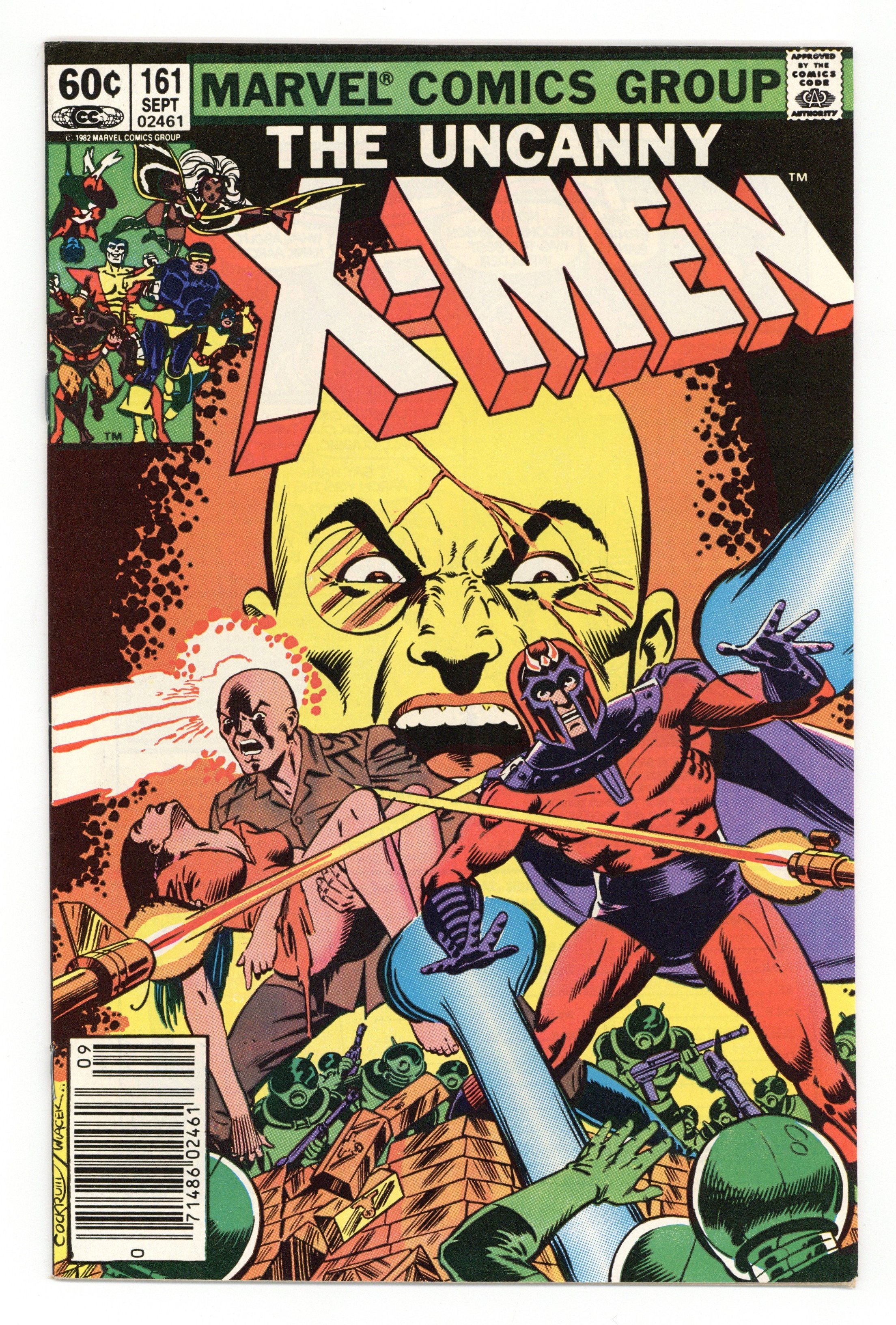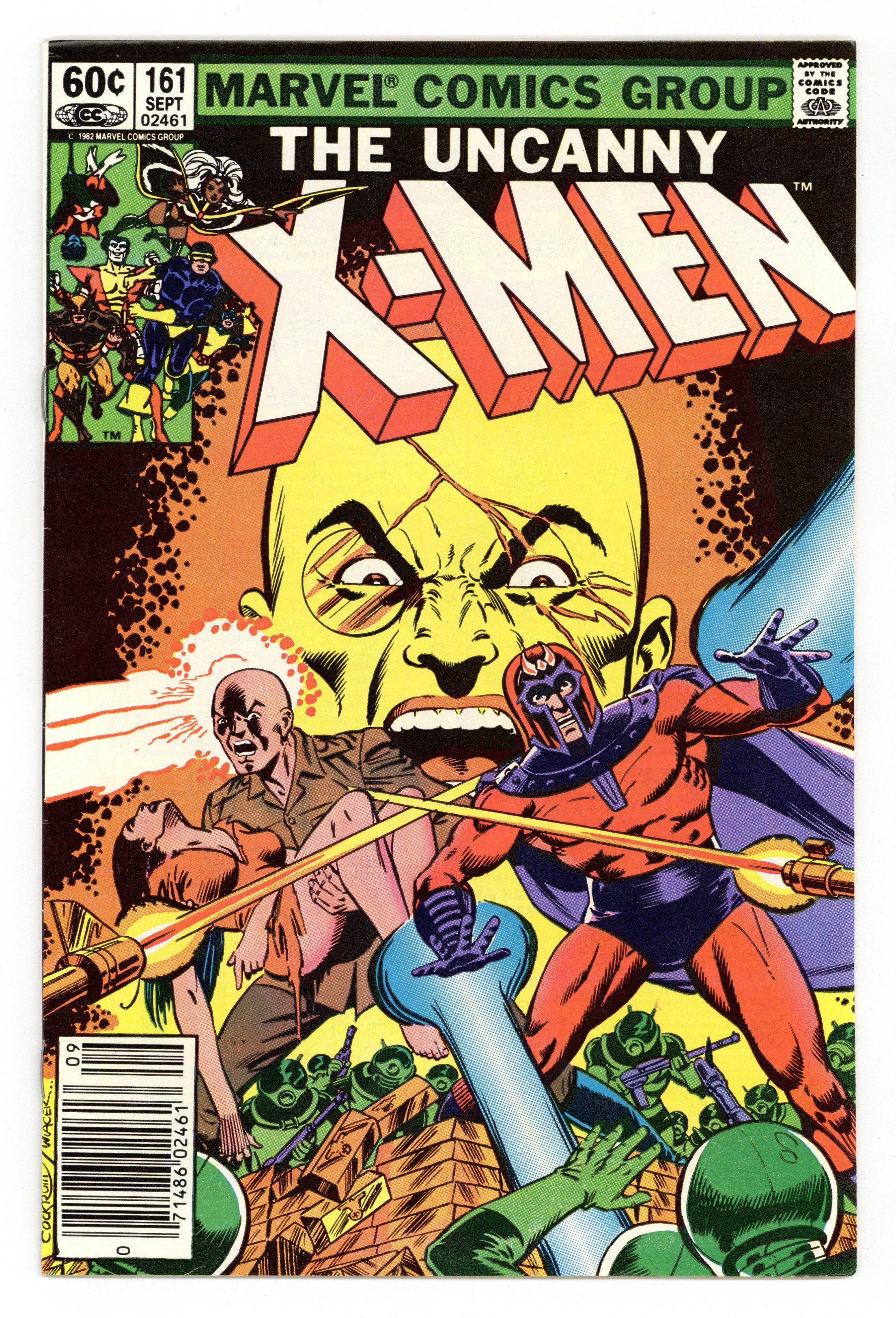 Newsstand Edition. "Gold Rush!" Story by Chris Claremont. Art and cover by Dave Cockrum and Bob Wiacek. Professor X is at the forefront in the pursuit of the peaceful coexistence between mankind and mutants. Magneto is at the forefront of a faction of the mutant populace that believes that the mutants should rule mankind. However, these two powerful opposing forces were not always enemies. In fact, they were best friends. Chris Claremont and Dave Cockrum reveal an exciting adventure from the past when Charles Xavier and Magneto stood side-by-side against a burgeoning evil known as Hydra! 36 pgs. Cover price $0.60.