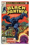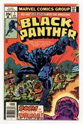 Tags: Marvel Legacy Numbering: Black Panther (part 7), Black Panther$13.50Cover pencils by Jack Kirby, inks by Ernie Chan. Drums!, script and pencils by Jack Kirby, inks by Mike Royer; T'Challa reveals the origin of the Black Panther cult and Wakanda's vibranium mound; Black Panther and Abner Little return to the Collectors and Little reveals he managed to steal a vial of the miracle water from Samurai City; But, the vial is broken in the ensuing fight among the Collectors for the vial and T'Challa returns to Wakanda; In Wakanda, General Jakarra exposes himself to raw vibranium hoping to gain power, but is mutated by the contamination. 32 pgs. $0.35. Cover price $0.35.