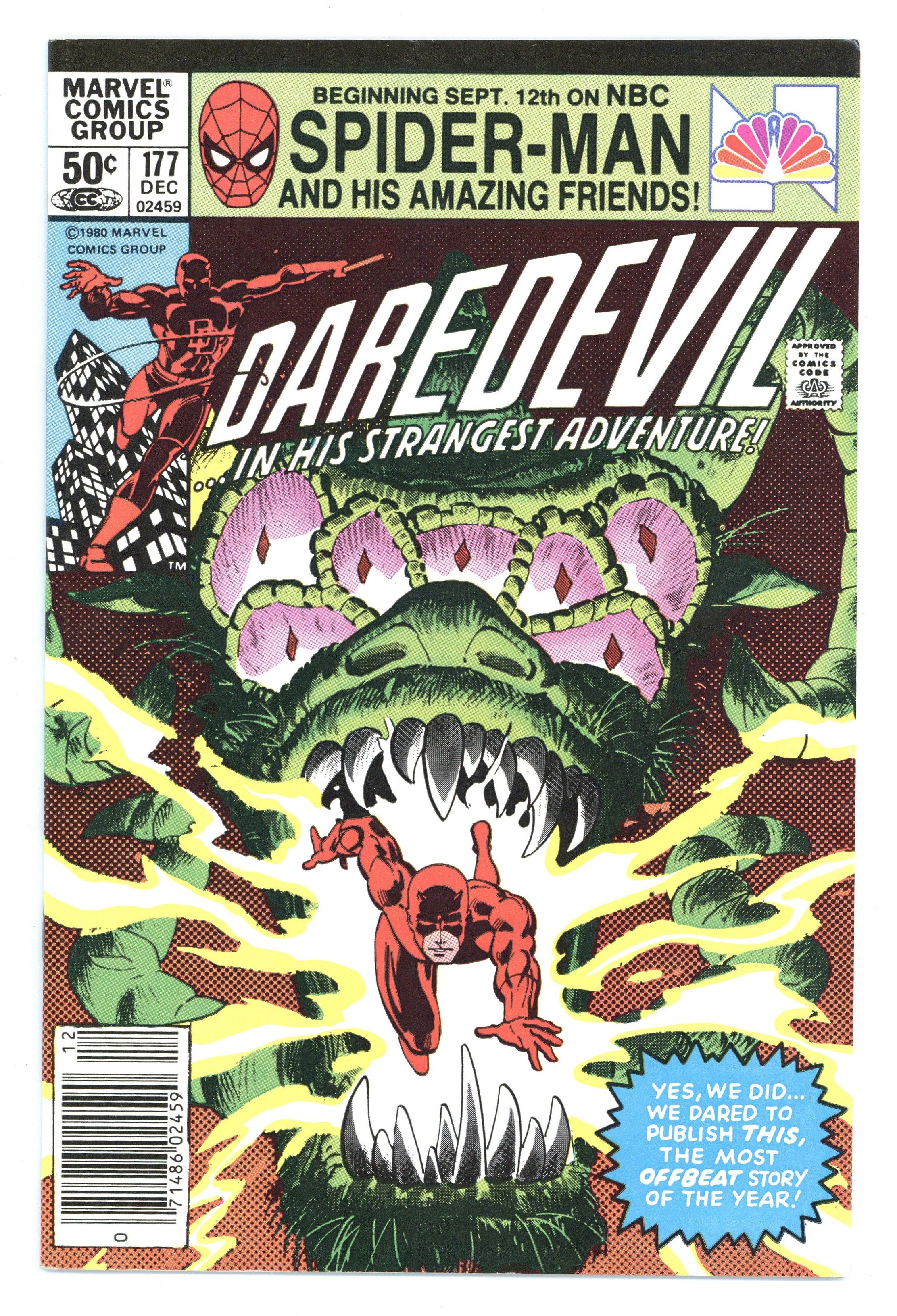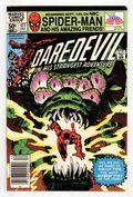 Newsstand Edition. Last 50-cent issue. Cover pencils by Frank Miller, inks by Klaus Janson. Where Angels Fear To Tread, script by Frank Miller, pencils by Frank Miller (breakdowns) and Klaus Janson (finished art), inks by Klaus Janson; Stick helps his old pupil face his demons and regain his radar sense; The Bugle publishes an expose on Kingpin's candidate for Mayor of New York; Elektra is brought to Kingpin's attention; Daredevil origin retold; Jonah Jameson appearance; cameo by the Hand. 36 pgs. Cover price $0.50. Cover price $0.50.