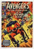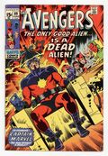 $27.00"The Only Good Alien... " Part 1 of 9. Guest-starring Captain Marvel. Script by Roy Thomas. Pencils by Sal Buscema. Inks by Sam Grainger. Cover by Sal Buscema. The classic Kree/Skrull War storyline starts with a bang as Earth's Mightiest Heroes and Rick Jones pursue Captain Marvel on the streets of Miami! Wow, why are the Avengers chasing the Kree Warrior? Especially after Wanda, Pietro, and the Vision just fought alongside him several hours ago in the Baxter Building vs. Annihilus! Dangerously though, the cosmic superhero's body is teeming with deadly radiation after spending too much time in the Negative Zone! Once the Avengers capture Captain Marvel, they take him to Cape Canaveral in hopes of saving his life! Meanwhile on Hala, the Kree homeworld, Ronan the Accuser leads a rebellion against the Supreme Intelligence! Ronan's actions will have immediate and far-reaching effects on the Milky Way Galaxy and of course Earth's Mightiest Heroes! Cameo appearance by Sentry 459. Flashback cameo by Mr. Fantastic to recap his escape from the Negative Zone in Fantastic Four 110. Avengers Lineup: Quicksilver, Scarlet Witch, and the Vision. (Notes: Captain Marvel's participation in the Kree/Skrull War occurs while his own series was on a 2-year hiatus. Ronan previously appeared in Captain Marvel 16. Annihilus appears next in Marvel Team-Up 2. The full Kree/Skrull War saga was reprinted in 2000 in the trade paperback: The Avengers -- The Kree-Skrull War.) 36 pages. Cover price $0.15.
