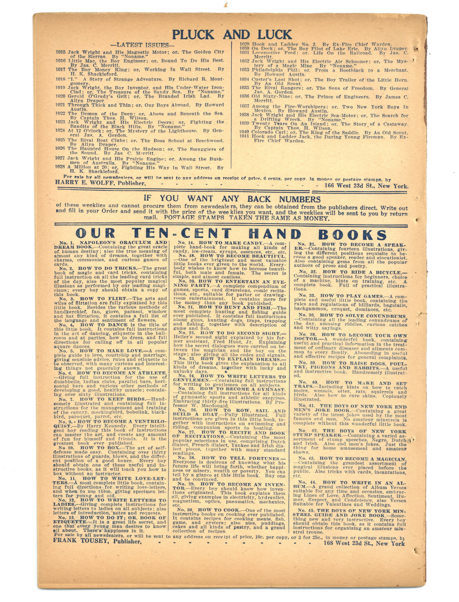 Published Apr 1918 by Harry E. Wolff.$110.00- Staple rust: Slight.