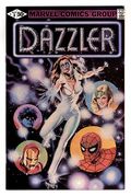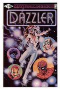 $20.50Corrected version with pages 24 & 25 printed in color. Dazzler origin in "So Bright This Star." Script by Tom DeFalco, pencils by John Romite Jr., inks by Alfredo Alcala. Guest appearances by Spider-Man, the X-Men (Storm, Wolverine, Colossus, Nightcrawler, and Sprite), the Avengers (Hawkeye, the Beast, Iron Man, the Wasp, and Captain America), and the Enchantress. This issue was not sold on newsstands, but available only from direst-sale outlets. Bob Larkin painted cover. Cover price $0.50.