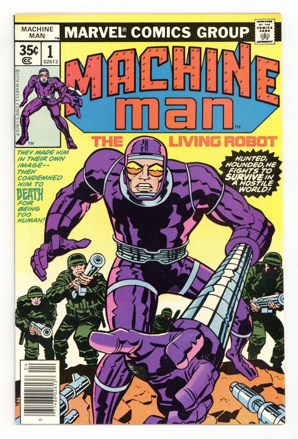 Ends May 4 8:41 PM CST Bid History 1 bid Current Bid $1 Your Secret Max Bid If you'd like to bid, please log in or register. Cover pencils by Jack Kirby, inks by Frank Giacoia. "Machine Man," script and pencils by Jack Kirby, inks by Mike Royer; While Machine Man is busy saving the life of a hiker in danger, he is unaware that Dr. Broadhurst is receiving a government agent who is informing him that Colonel Kragg has been assigned to terminate the last surviving X-51 unit; Machine Man walks deeper into the forest where he comes across Peter Spaulding, whose van is struck behind a fallen tree; After MM moves the tree out of the way, Peter offers Machine Man a lift; They make small talk in the van until Machine Man learns that Peter is a psychiatrist and becomes uncomfortable and exits the van in traffic; Using a skateboard built into his feet, Machine Man attracts the notice of the police, who in turn alert the troops of Col. Kragg. Mr. Machine renamed Machine Man; cont'd from 2001: A Space Odyssey #10. 36 pgs., full color. Cover price $0.35.