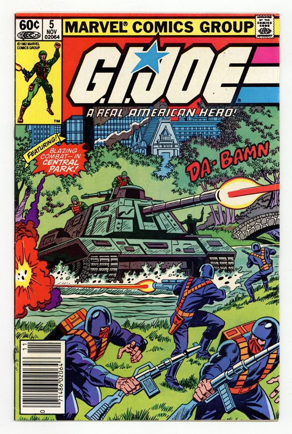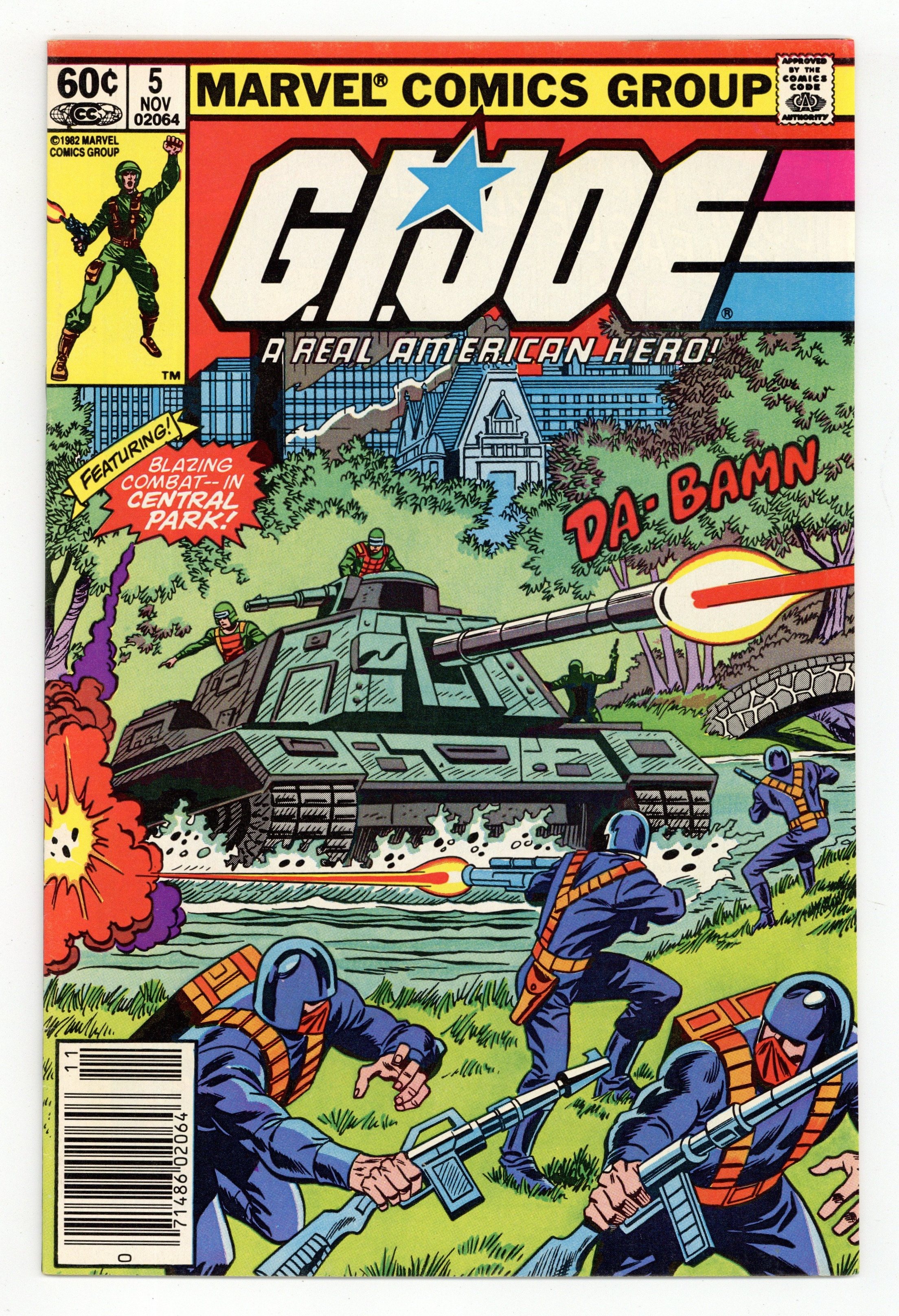 First printing. Newsstand Edition. "Tanks for the Memories!" Written by Larry Hama. Art by Don Perlin, Jon D'Agostino and Mike Esposito. The Joes, without permission, put their high-tech Mobat Tank with top secret weapons in a parade to prove to the high brass that this "souped up" tank can be sent on "sensitive" missions. However, Cobra finds out and put the Joes' confidence to the test! 32 pages, FC. Cover price $0.60.