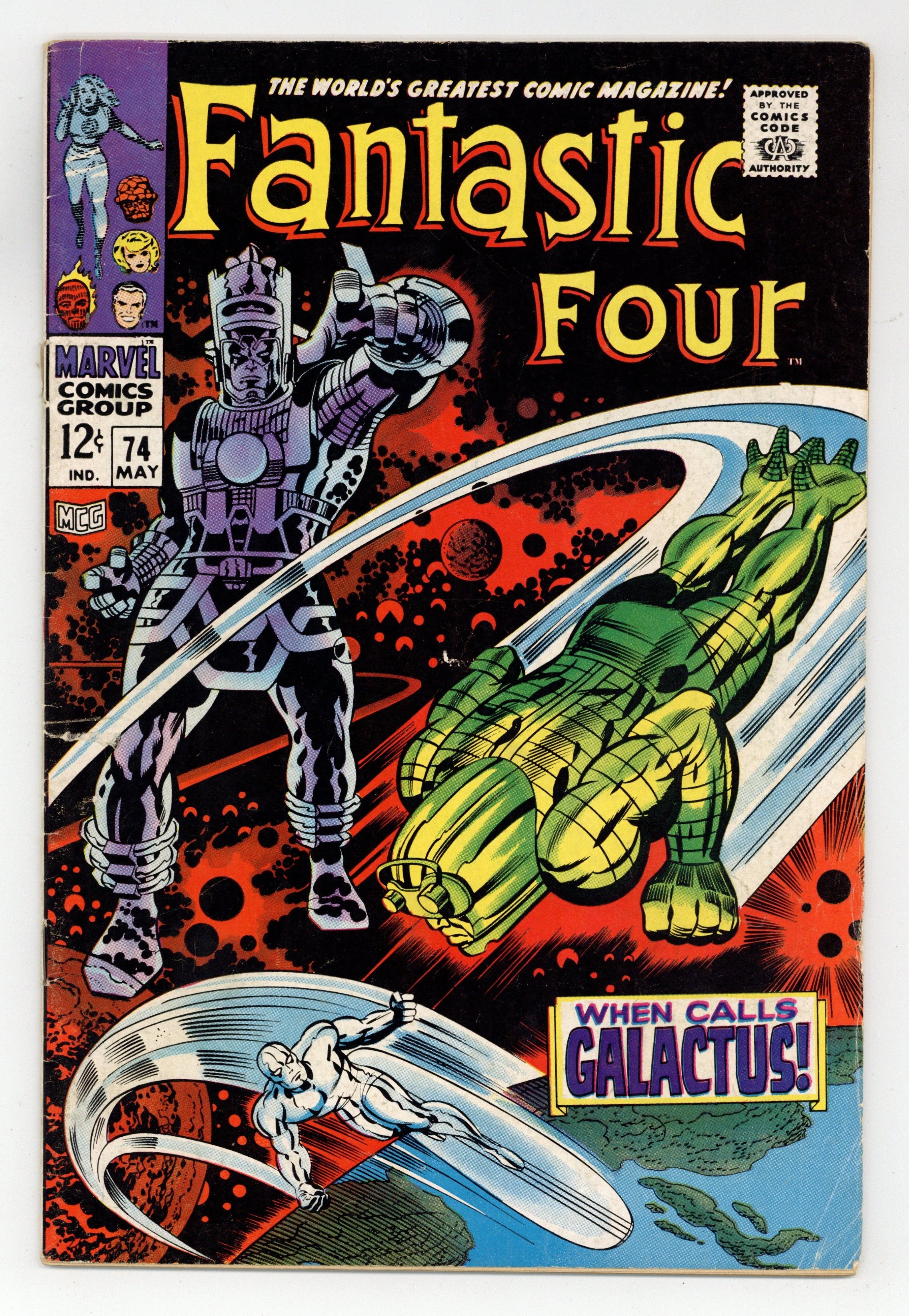 Starts Dec 15 Cover pencils by Jack Kirby, inks by Joe Sinnott. The Silver Surfer, Galactus, and Crystal (of the Inhumans) guest star in When Calls Galactus, script by Stan Lee and Jack Kirby (co-plot), pencils by Jack Kirby, inks by Joe Sinnott; Galactus dispatches his Punisher to retrieve the Surfer who is protected by the FF. Letters to the editor from comics writers Don McGregor and Tony Isabella. Kirby/Sinnott cover. Reprinted in Marvel's Greatest Comics # 56. 36 pgs. Cover price $0.12.