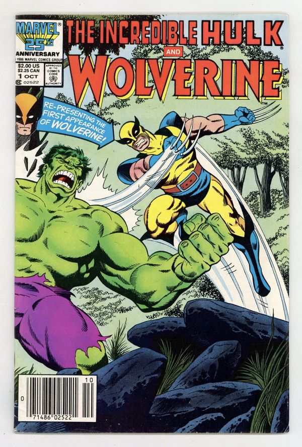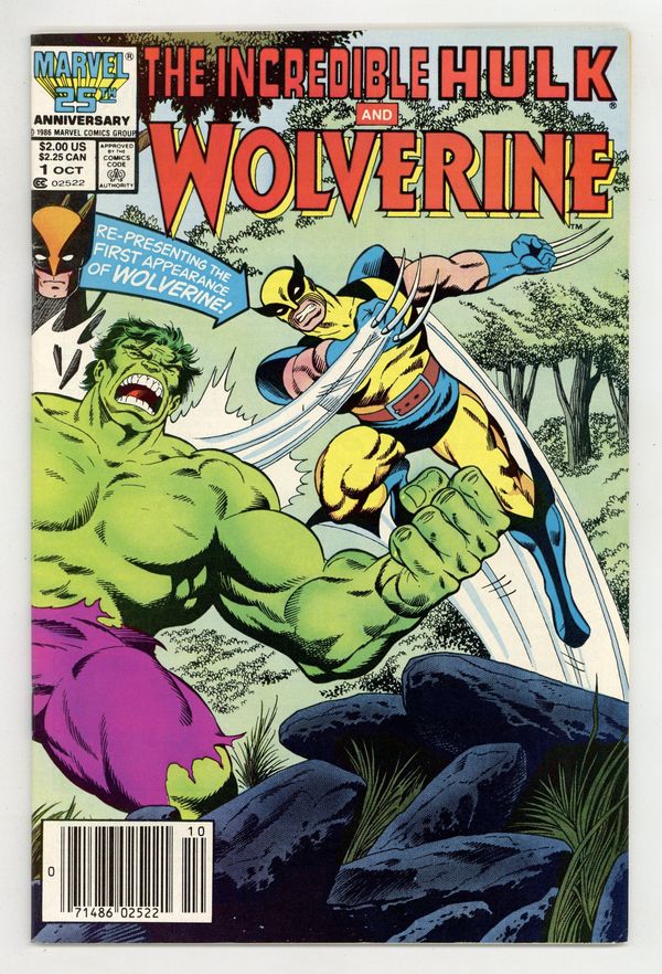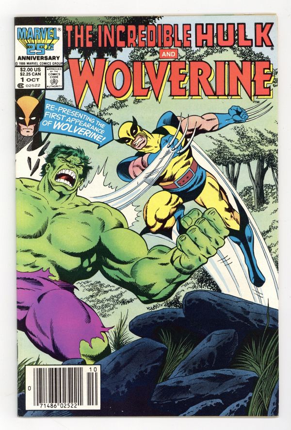 Newsstand Edition. Reprints: "And the Wind Howls Wendigo" (from Incredible Hulk 180) and "And Now, the Wolverine" (from Hulk 181) (scripts by Len Wein, pencils by Herb Trimpe, inks by Jack Abel); and "At the Sign of the Lion" (from Marvel Treasury Edition 28)(script by Mary Jo Duffy, pencils by Ken Landgraf, inks by George Perez). New 6-page text feature, "Wolverine: The Evolution of a Character" by Peter Sanderson. John Romita Sr. and Paul Smith sketches. John Byrne cover pencils, Jack Abel cover inks. Cover price $2.00.