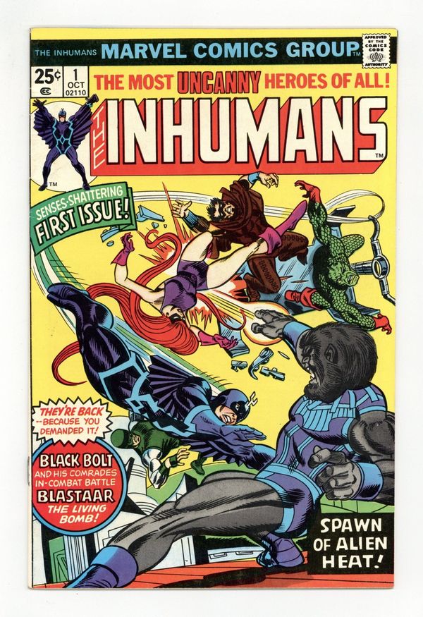 Ends Dec 8 8:37 PM CST Bid History 7 bids Current Bid $63 Your Secret Max Bid If you'd like to bid, please log in or register. They're back -- because you demanded it! Black Bolt and his comrades in-combat battle Blastaar the Living Bomb! Featuring: 19 page Inhumans story "Spawn of Alien Heat." Characters: Inhumans [Black Bolt; Medusa; Karnak; Gorgon; Triton]; Villain: Blastaar; Maximus; Intro: Iridia; Guest: Stallior; Centarius; Leonus; Avius; Hulk (flashback); Human Torch [Johnny Storm] (flashback). Written by Doug Moench, with art by George Perez and Frank Chiaramonte. Cover by Gil Kane and Frank Giacoia. Cover price $0.25.