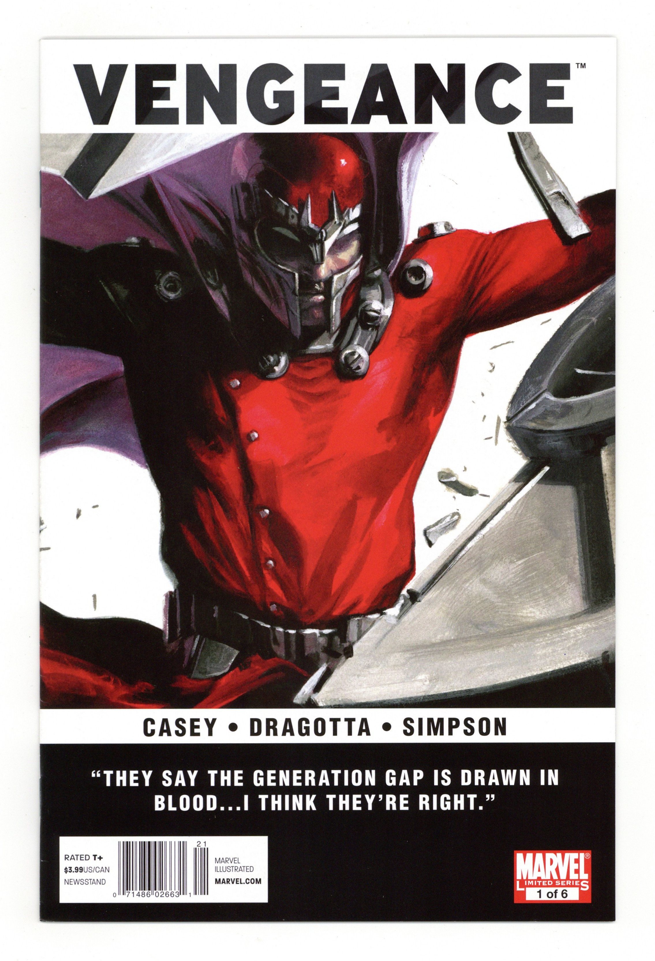 Newsstand Edition. Cover by GABRIELE DELL'OTTO Written by JOE CASEY Penciled by NICK DRAGOTTA. 1st appearance of Miss America (America Chavez). A MOST EPIC EVIL EXPLORATION OF THE MARVEL U! When MAGNETO of the X-Men tries to rescue a young Mutant on the run, he accidentally kicks off a series of events that will shake the very Marvel Universe to it's core! Who are the new TEEN BRIGADE?! Who are the Brotherhood and what do they want with the YOUNG MASTERS OF EVIL?! And how is the RED SKULL pulling the strings from beyond the grave? 32 PGS./Rated T+ Cover price $3.99.