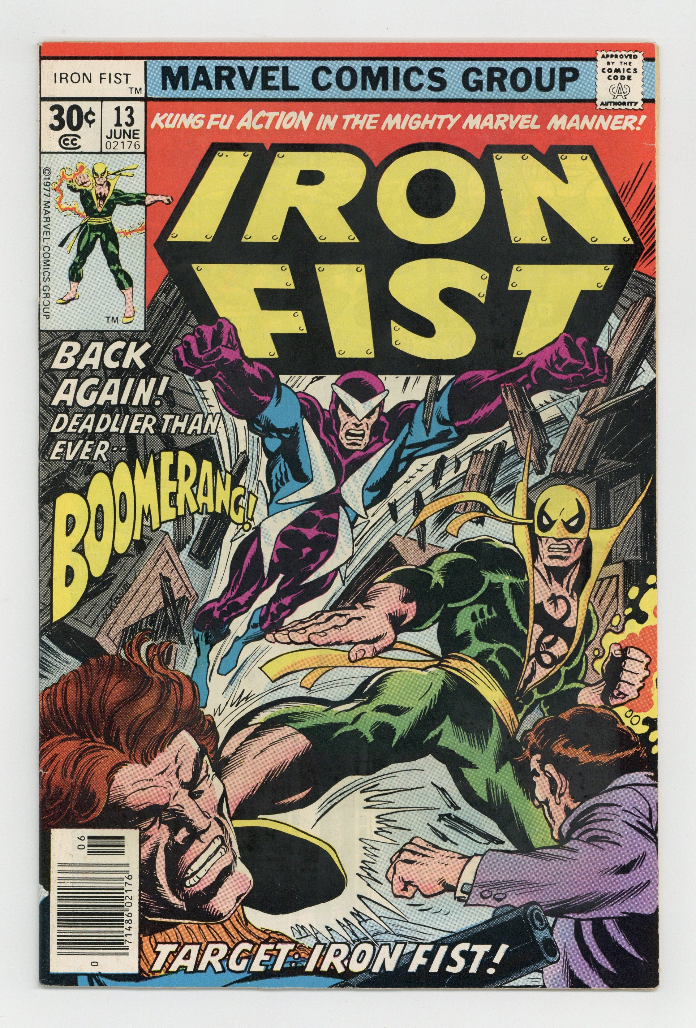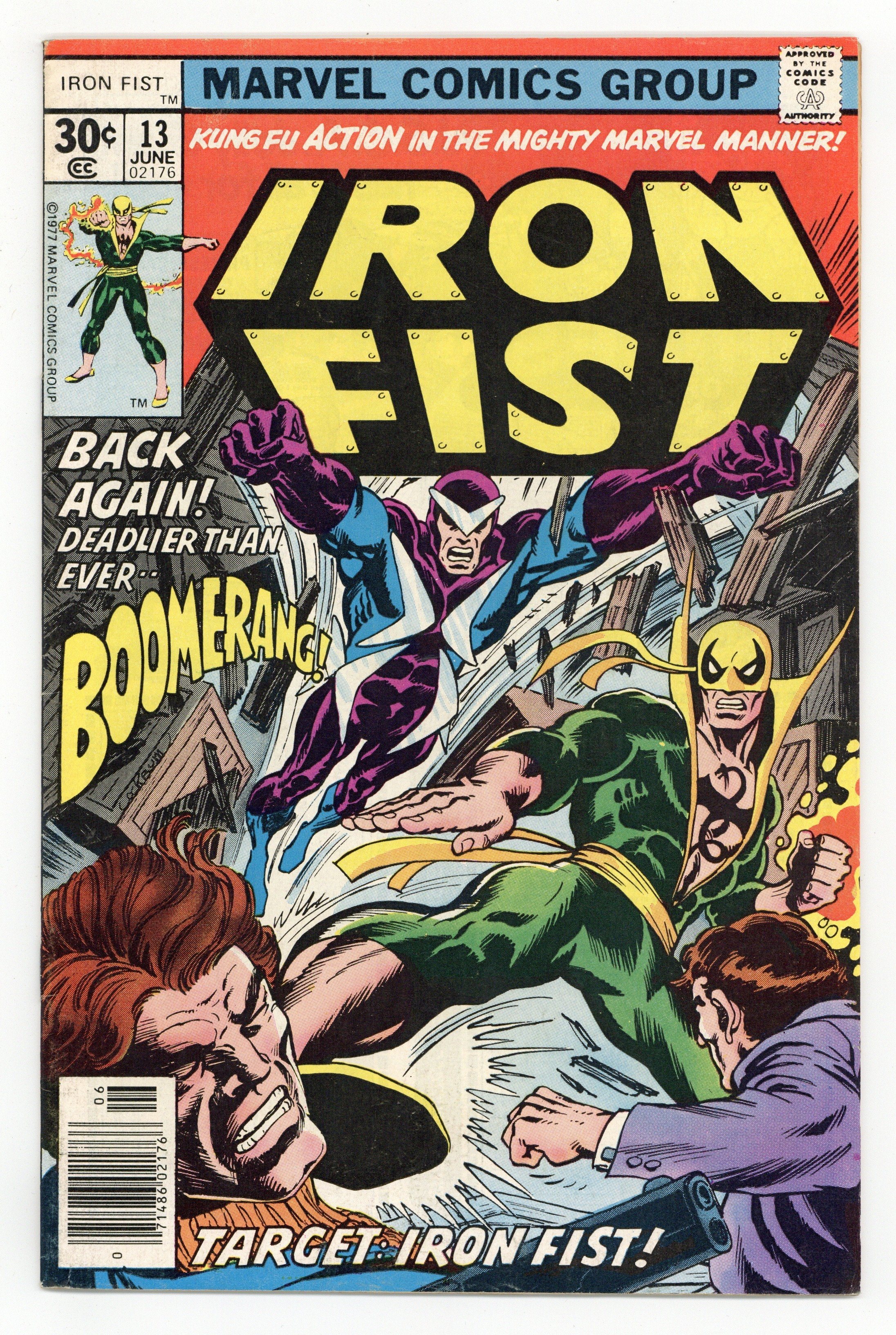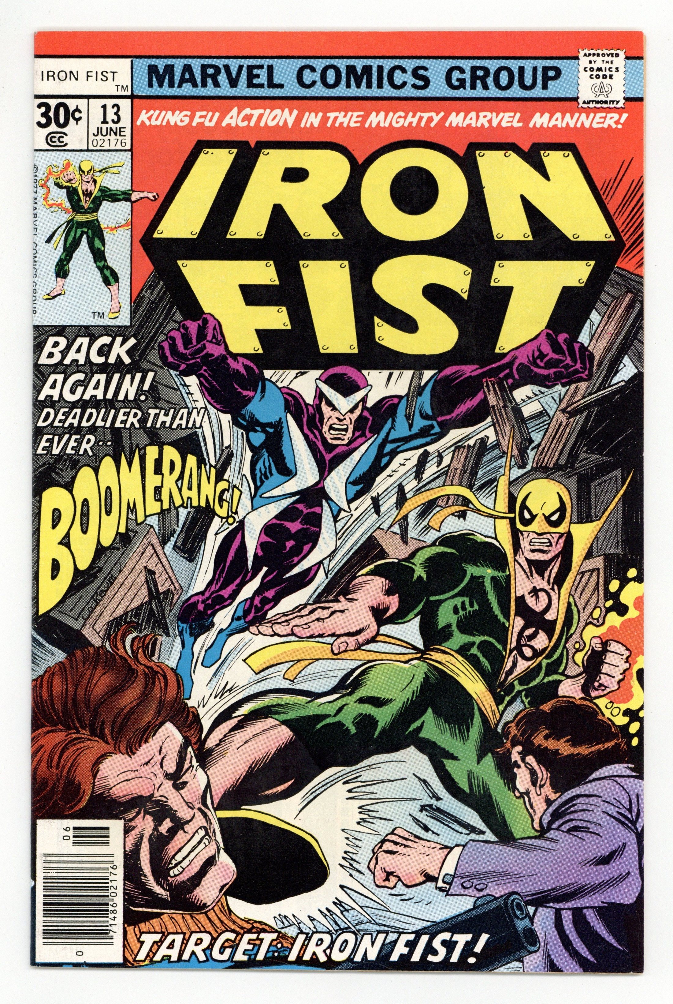 "Target: Iron Fist!" Guest-starring Misty Knight. Story by Chris Claremont. Art by John Byrne and Dan Adkins. The assassin known as Boomerang is back and he is deadlier than ever. And this time he is here for Iron Fist. Cover price $0.30.