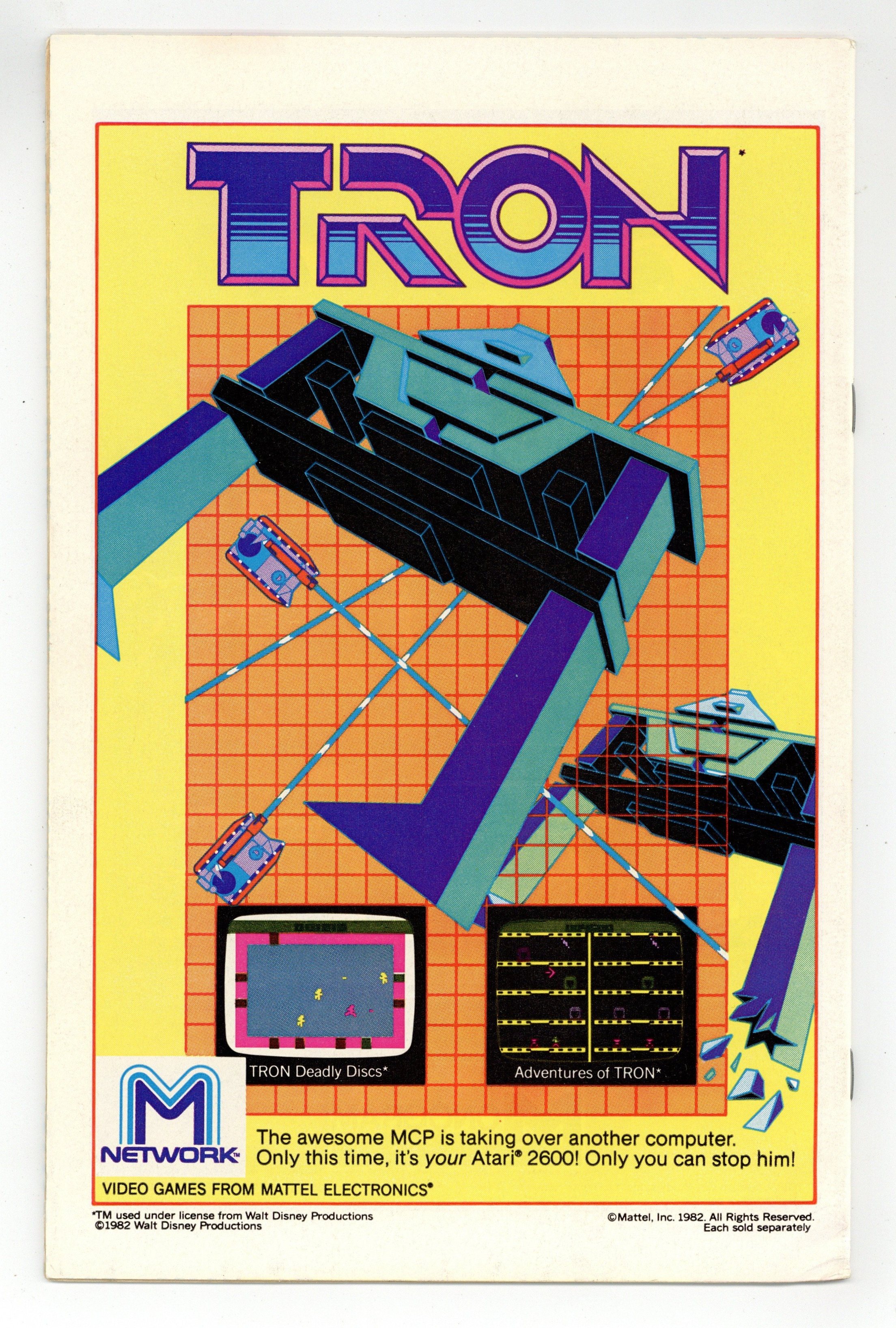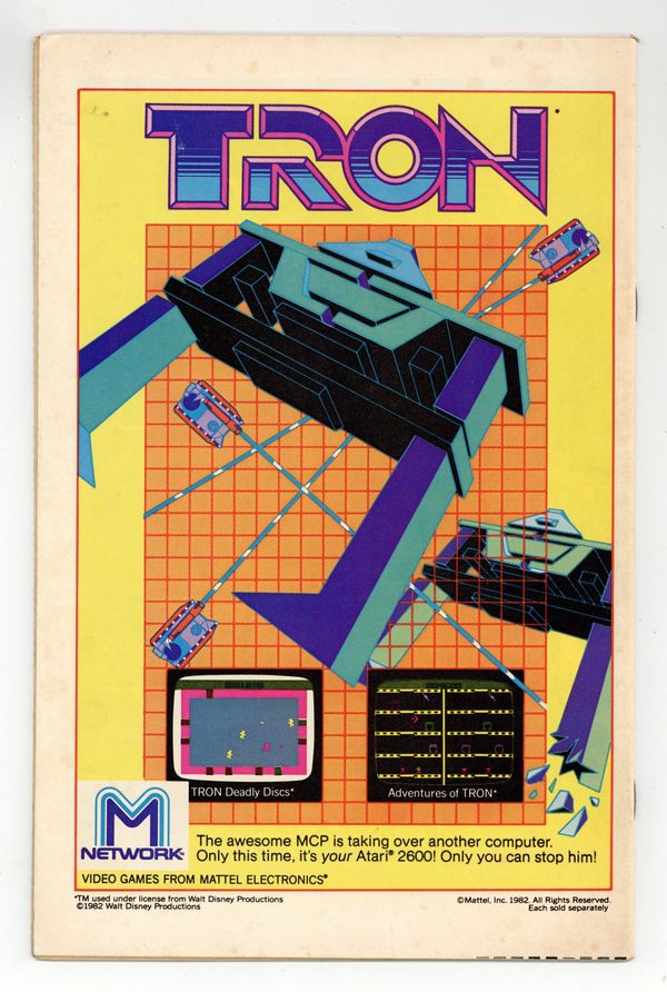 Newsstand Edition. Cover pencils by Carmine Infantino, inks by Rodin Rodriguez. The Slayer and the Slain, script by Cary Bates, pencils by Carmine Infantino, inks by Dennis Jensen; While Fiona Webb waits at the altar, Flash engages in an epic battle with Reverse-Flash and ends up killing him to save Barry's bride to be; Kid Flash makes a guest appearance; This leads to the dominant story-line of the last 26 issues, the trial of Flash for the murder of Prof Zoom. Advanced Dungeons & Dragons Intellivision ad. Warlord toy ad from Remco. Batman and the Outsiders ad, art by Jim Aparo. Meanwhile… column by Dick Giordano. Universal Monsters model kits ad from Monogram. Tron Atari 2600 ad. 36 Pages, Full Color. Cover price $0.60.