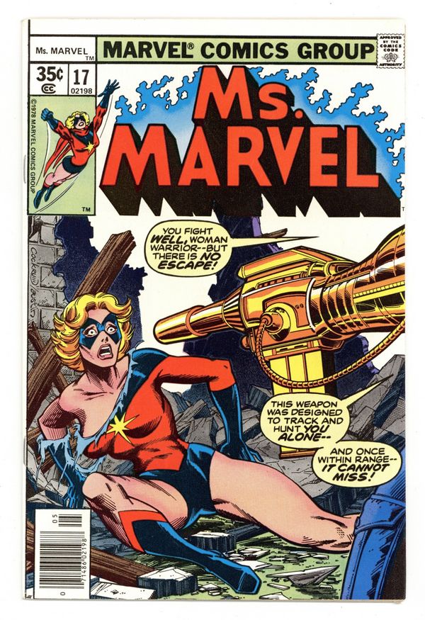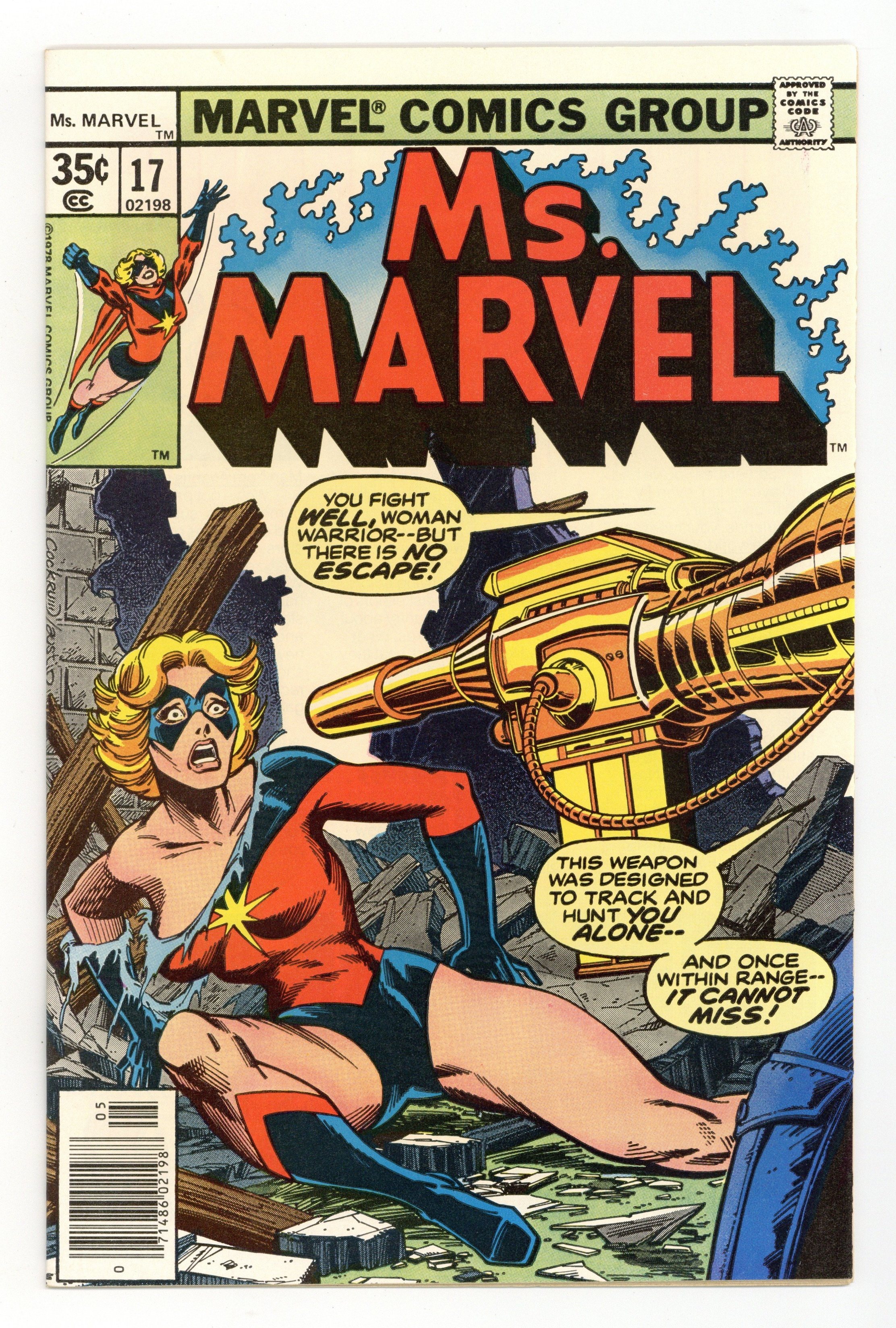 Tags: Marvel Legacy Numbering: Captain Marvel (part 17)$17.50Dave Cockrum and Terry Austin cover. Chris Claremont script. Jim Mooney & Tony DeZuniga art. "Shadow of the Gun" Ms. Marvel vs. Centurion. 2nd appearance of X-Men character, Mystique (cameo). Cover price $0.35.