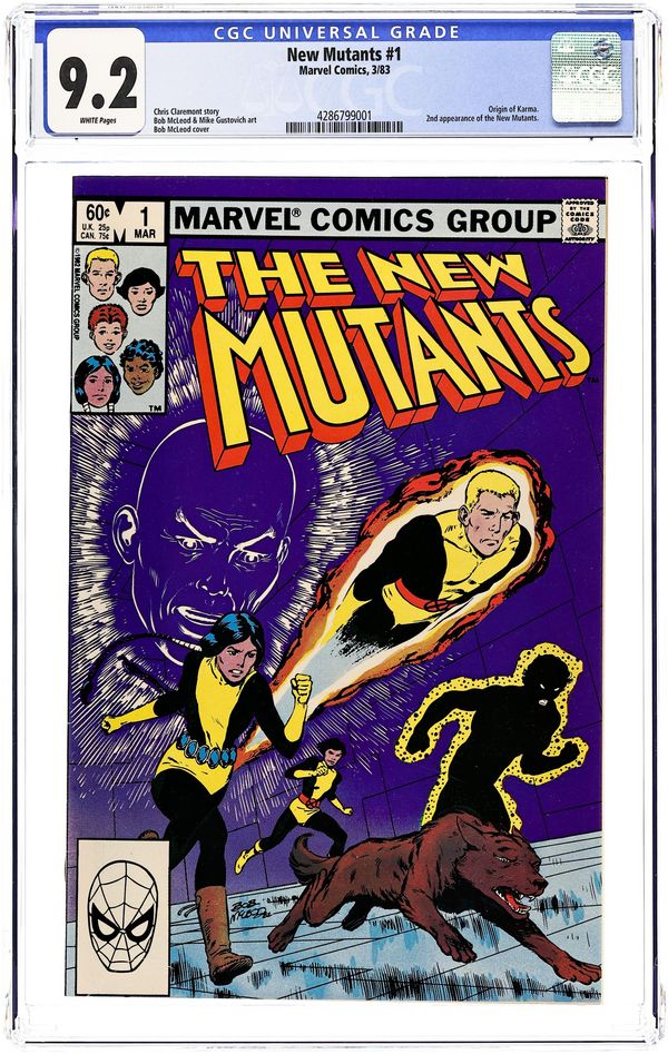 Ends May 4 8:57 PM CST Bid History 5 bids Current Bid $46 Your Secret Max Bid If you'd like to bid, please log in or register. Direct Edition. Regular series begins (first appearance is in Marvel Graphic Novel 4). Cover art by Bob McLeod. Initiation!, script by Chris Claremont, pencils by Bob McLeod, inks by Mike Gustovich; The New Mutants get acclimated to their new home, new talents, new friends, and new teachers, unaware that they are being watched; Moira learns that Professor X has a son; and Psyche is attacked in the Danger Room by an unknown assailant; Origin of Karma. Second appearance of the New Mutants (after Marvel Graphic Novel #4). Cover price $0.60.