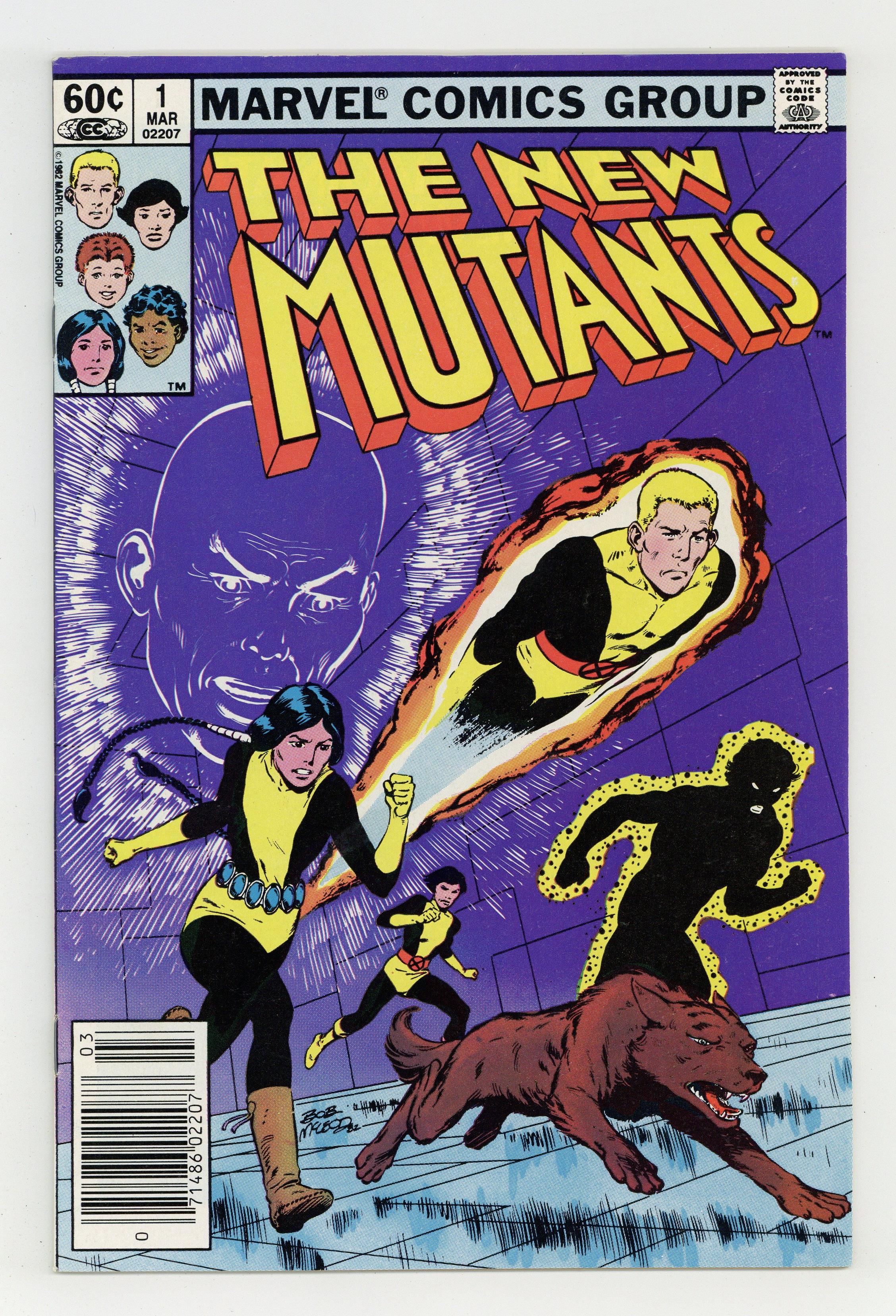 Starts May 18 Direct Edition. Regular series begins (first appearance is in Marvel Graphic Novel 4). Cover art by Bob McLeod. Initiation!, script by Chris Claremont, pencils by Bob McLeod, inks by Mike Gustovich; The New Mutants get acclimated to their new home, new talents, new friends, and new teachers, unaware that they are being watched; Moira learns that Professor X has a son; and Psyche is attacked in the Danger Room by an unknown assailant; Origin of Karma. Second appearance of the New Mutants (after Marvel Graphic Novel #4). Cover price $0.60.