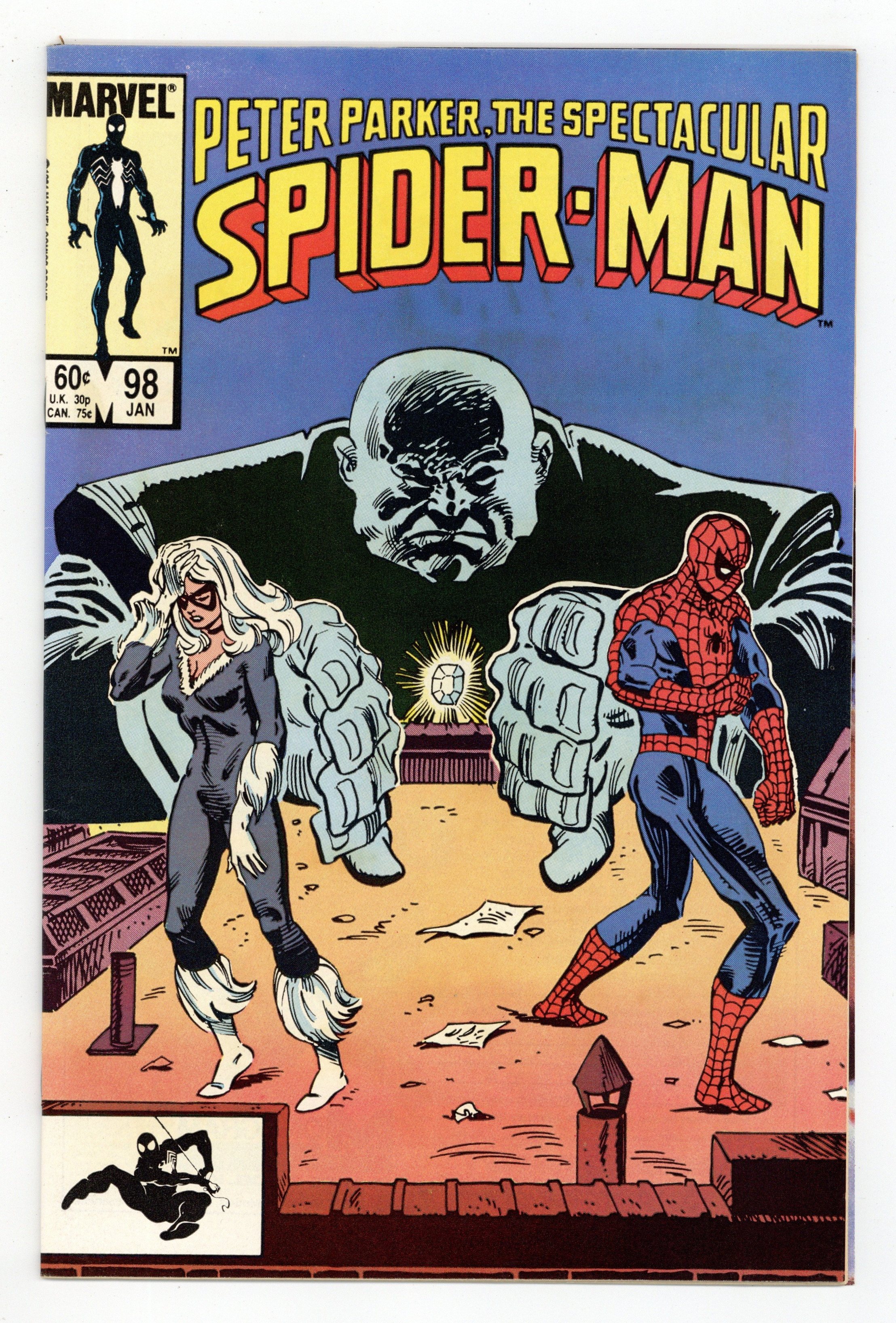 Direct Edition. "True Confessions!" Script by Al Milgrom. Pencils by Herb Trimpe. Inks by Jim Mooney. Cover by Al Milgrom. The Black Cat finally tells the web-slinger the truth about the Kingpin's involvement in her gaining new powers. Spider-Man is shocked. Is this the beginning of the end for the wall-crawler and Felicia? Meanwhile, the alien symbiote has escaped from the Baxter Building and is on the prowl...looking for Spider-Man! First appearance of the Spot. Cameo appearance by the Kingpin. 32 pages Cover price $0.60.