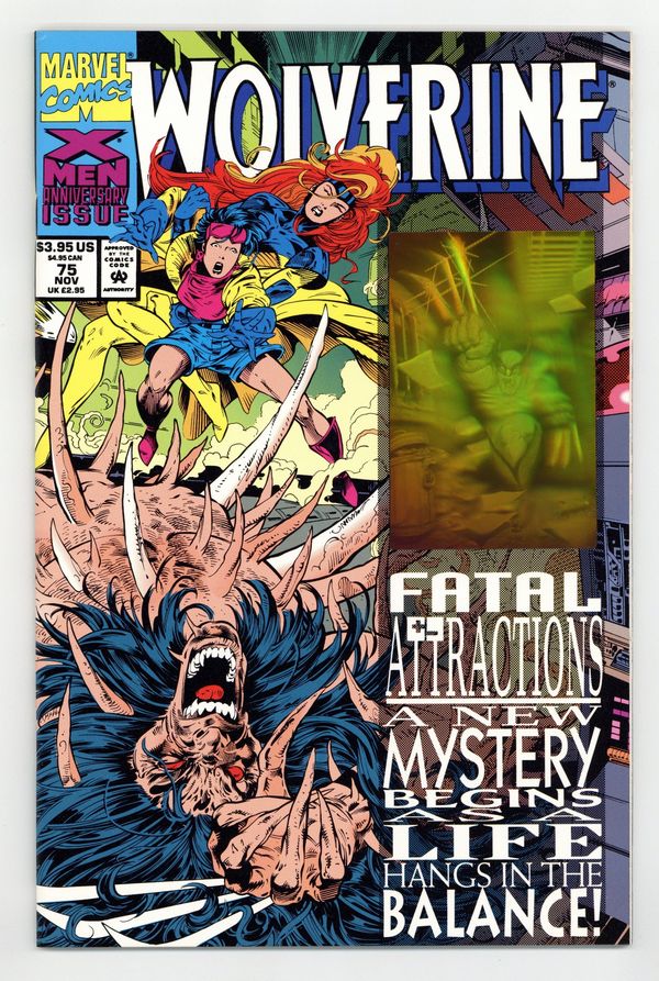 Direct Edition. Fatal Attractions: Part 5 of 6 - Hologram card on cover - "Nightmares Persist!" Guest-starring the X-Men. Written by Larry Hama. Art by Adam Kubert, Mark Farmer, Dan Green, and Mark Pennington. Story continued from X-Men (1991-2008 1st Series) #25 - The storyline that changed the feral X-Man's life continues! Magneto, the Master of Magnetism, just sucked out all the Adamantium in Wolverine's body, leaving him a bloody, pulpy mess. First appearance of Wolverine's bone claws. Can even Wolverine's vaunted healing factor save him this time? Can Jean Grey's mutants powers keep his body in one piece long enough for it to try? Story concludes in Excalibur #(1988 1st Series) #71. 32 pages, FC NOTE: Adam Kubert jumps on board with issue joining Larry Hama on a run that will some of the finest Wolverine stories to date. In a time of Clone Sagas, Heroes Reborn, and watered down tough guys with guns comics, the Kubert/Hama run on Wolverine (along with the Age of Apocalypse storyline) kept me reading comics long enough for them to get good again. - Odinson, Lone Star Comics Archivist Cover price $3.95.