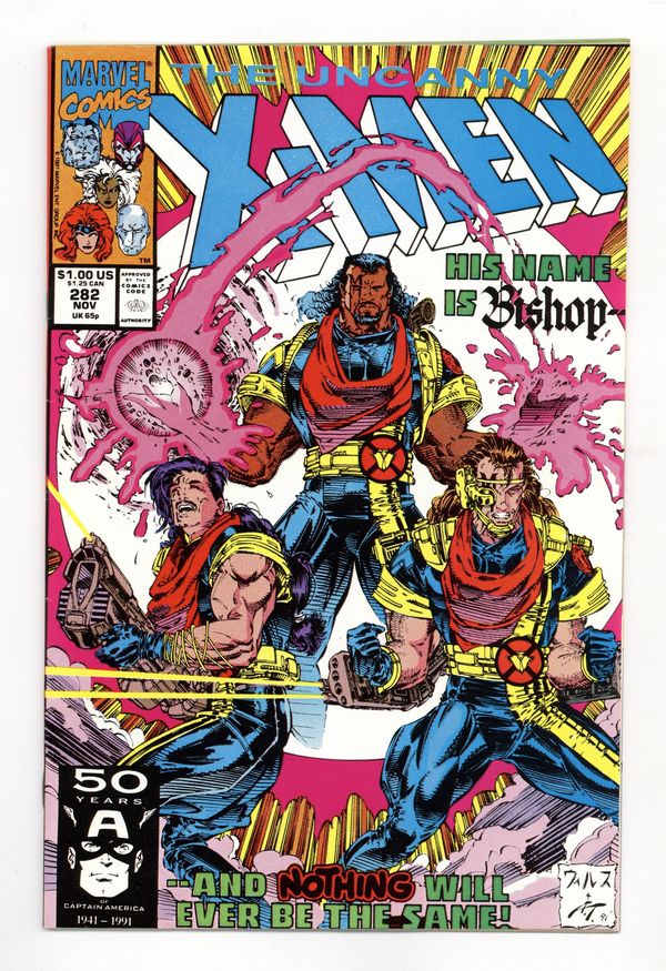Tags: X-Men$10.50Direct Edition. "Payback!" Story by Whilce Portacio and John Byrne. Art by Whilce Portacio and Art Thibert. In one fell swoop the Upstarts have destroyed the Reavers and crippled the Hellfire Club. Next up, the Mutant Liberation Front. Who can stop these powerful new foes? Enter: Bishop! NOTE: 1st appearance of Bishop. 40 pgs. Cover price $1.00.