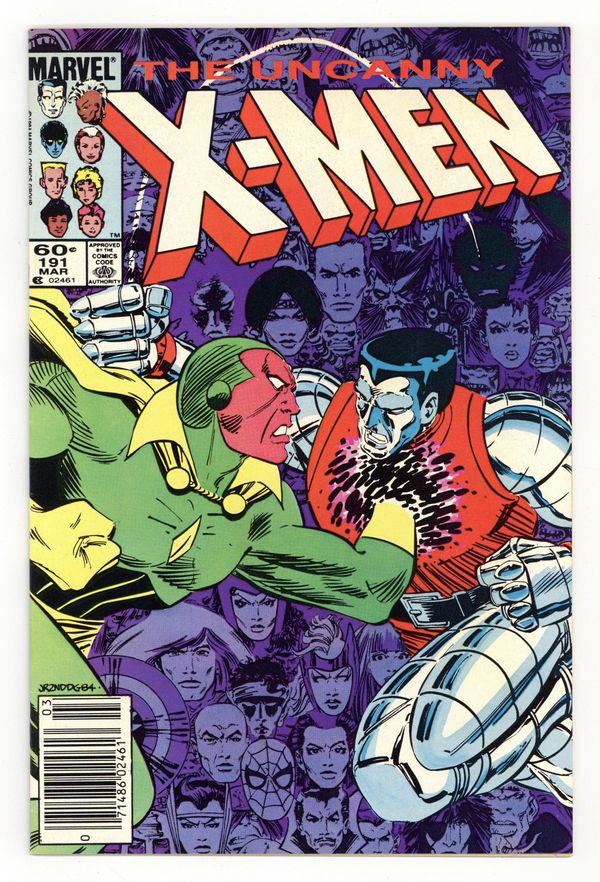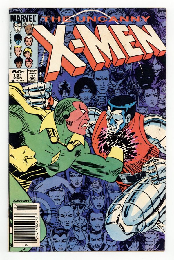 Newsstand Edition. "Raiders of the Lost Temple!" Part 2 of 2. Guest-starring the Avengers, the New Mutants, Doctor Strange, and Spider-Man. Story by Chris Claremont. Art by John Romita, Jr. and Dan Green. The X-Men, Avengers, and New Mutants must unite and defeat some of their own to stop the sinister warlock Kulan Gath before his dark magic encompasses the Earth, turning everything into a fantasy world of sword and sorcery. The key to victory lies with the man known as the Spider! Plus, a mysterious new threat arrives from the future. NOTE: 1st appearance of Nimrod. 36 pgs. Cover price $0.60.