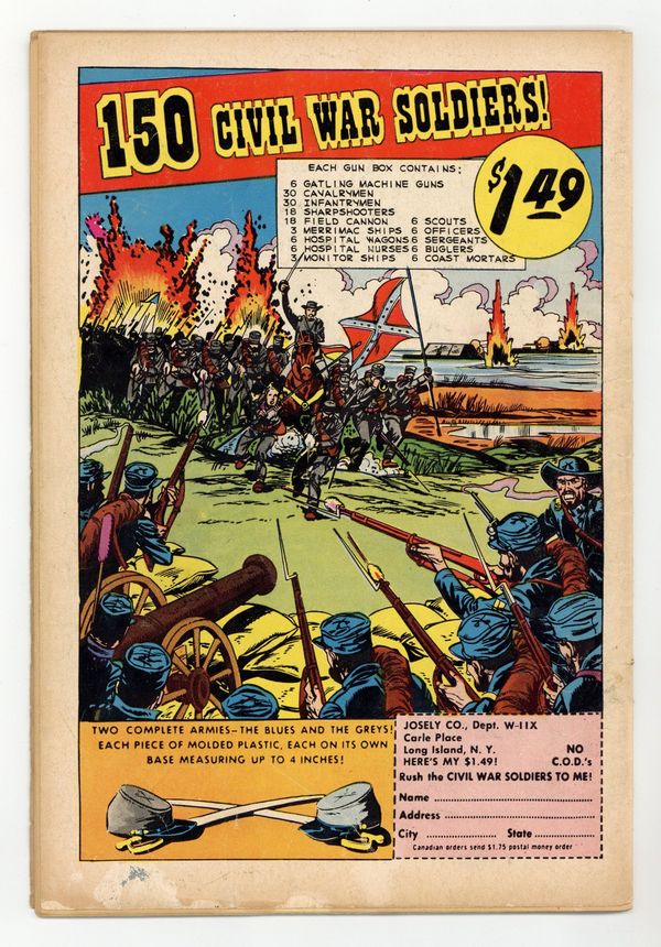 $12.00- Piece missing, slightly affects ad panel edge. Piece missing of back cover. 1 1/2" tear on back cover. Cover detached at one staple. Water damage.