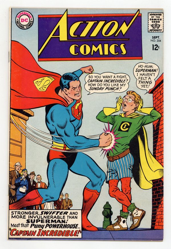 Cover pencils by Curt Swan, inks by George Klein. The Adventures of Bob Hope ad. "Captain Incredible!", script by Cary Bates, art by Al Plastino; Captain Incredible, whose powers are even greater than Superman's, comes to Metropolis to help the Man of Steel, then turns on him. Superman's Girl Friend, Lois Lane ad. "The Brain-Stealers!", script by Leo Dorfman, art by Jim Mooney; The Living Library of disembodied brains intend to force Supergirl to give them the ability to conquer the universe. 36 Pages, Full Color. $0.12 Cover price $0.12.