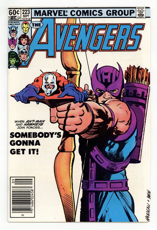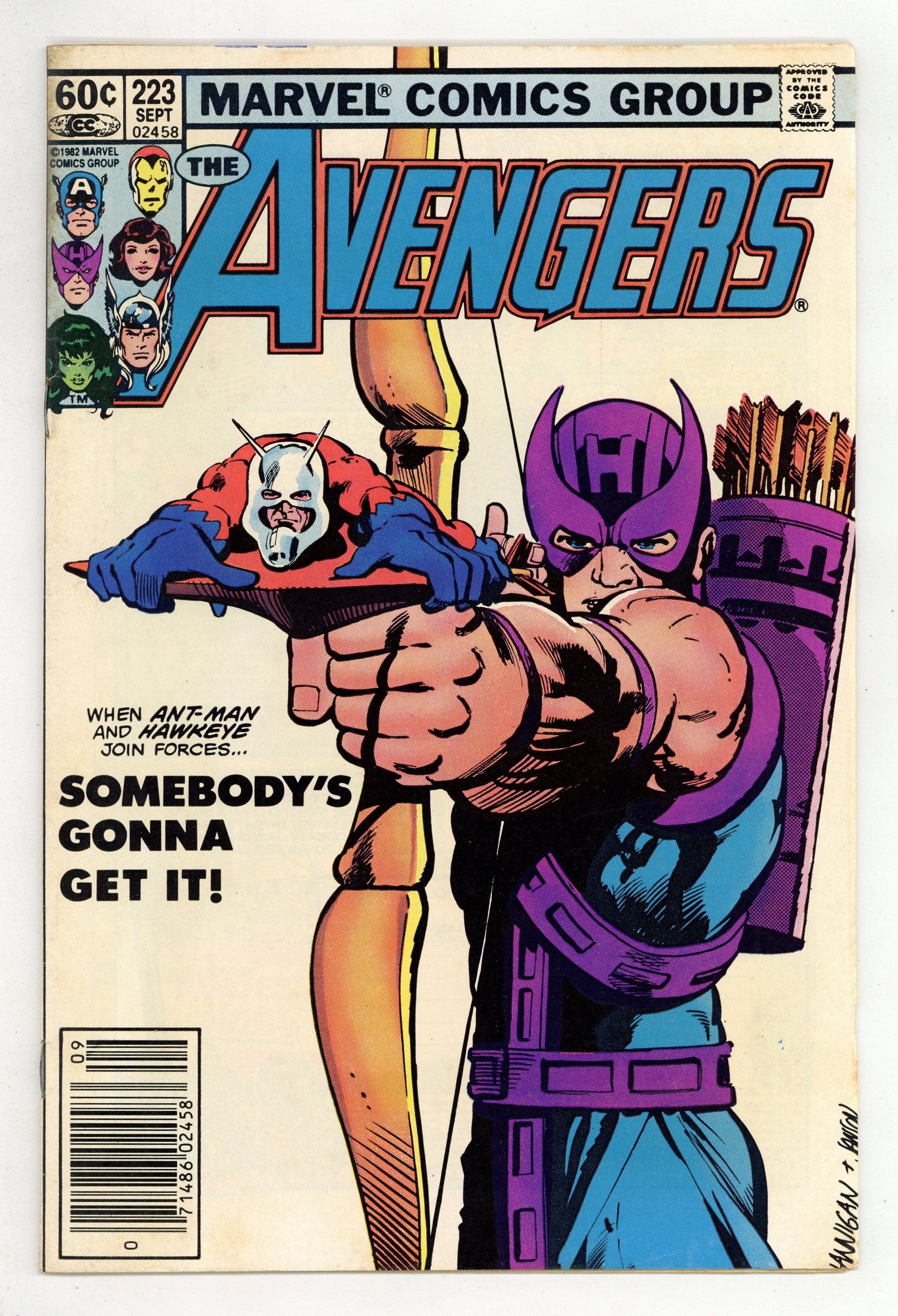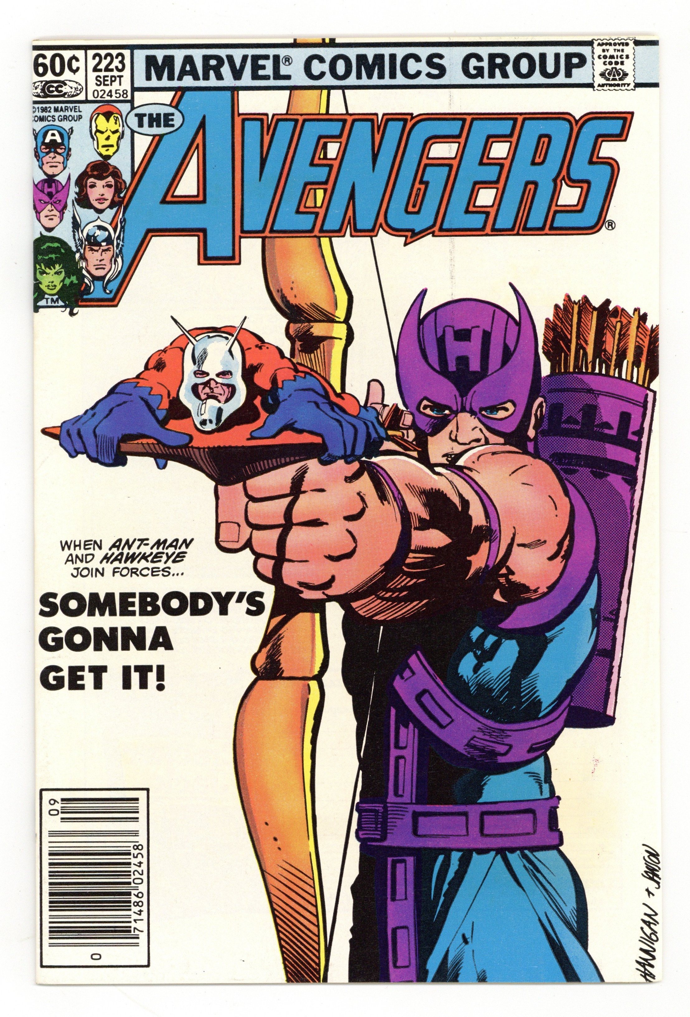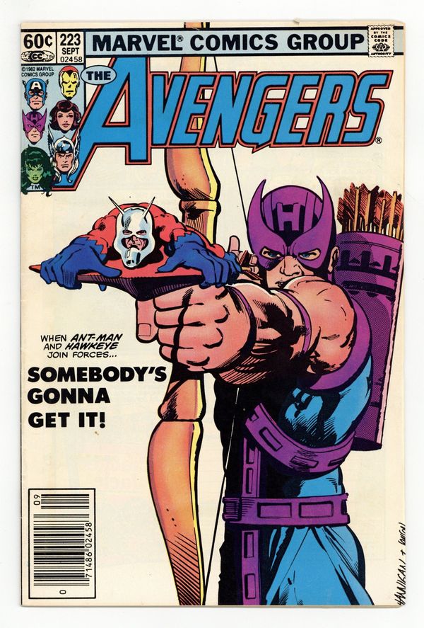Tags: Avengers$19.25Newsstand Edition. "Of Robin Hoods and Roustabouts" Guest-starring Ant-Man. Script by David Michelinie. Pencils by Greg LaRocque. Inks by Brett Breeding and helpers. Cover by Ed Hannigan and Klaus Janson. On a sunny afternoon in Nassau County, Clint Barton and Scott Lang attend a traveling carnival. Scott is there having fun with his daughter enjoying the attractions, while Clint is following a lead concerning possible criminal activity! Hawkeye's and Ant-Man's paths collide when a super-villain is discovered at the carnival! It's the Taskmaster! The man with the photographic reflexes! And inside a giant circus tent, Ant-Man and the ace archer will try to cancel the Taskmaster's act! Cameo appearances by Captain America, Iron Man, She-Hulk, and the Wasp. (Notes: The Taskmaster previously appeared in Marvel Team-Up 103. The back cover features a Megaforce ad drawn by William Stout.) 36 pages Cover price $0.60.
