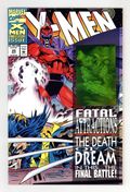 Tags: Fatal Attractions (part 4), X-Men$13.50Direct Edition. Standard Gambit Hologram Cover by Andy Kubert. 48-page giant; Magneto pulls the adamantium out of Wolverine's body in this issue. Andy Kubert art. Fatal Attractions part 4 of 6: "Dreams Fade." Script by Fabian Nicieza, pencils by Andy Kubert, inks by Matthew Ryan. Cameos by the Thing and Mr. Fantastic (of the Fantastic Four) and Nick Fury. Kubert/Ryan wraparound cover. Cover price $3.50.