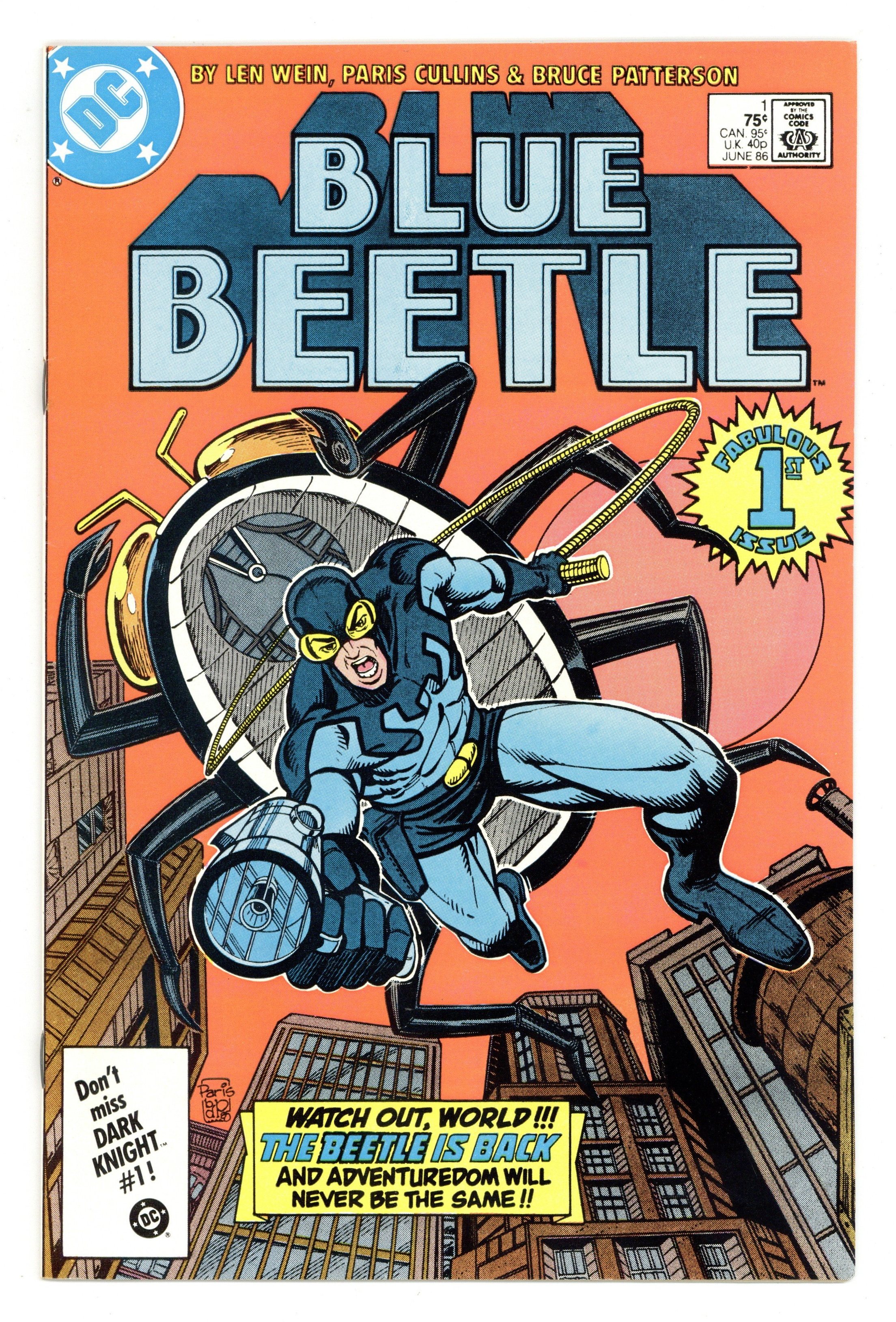 Direct Edition. Scientist and entrepreneur Ted Kord, a.k.a. the Blue Beetle, has a rematch with Firefist, the Incendiary Man, in "Out From The Ashes!" Part 1 of 2, continued next issue. Script by Len Wein, pencils by Paris Cullins, inks by Bruce Patterson. Cullins/Patterson cover. Cover price $0.75.