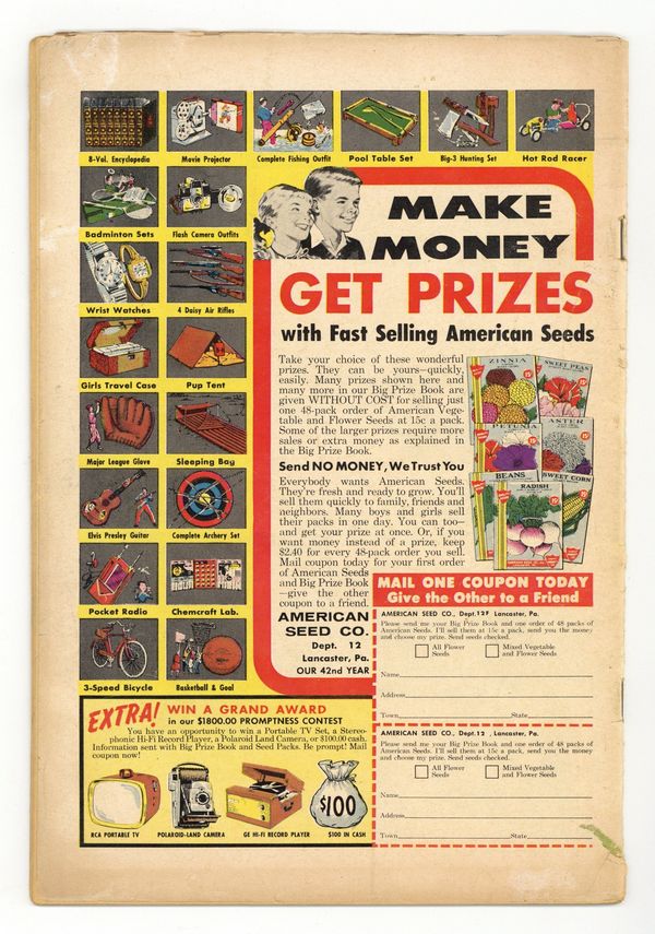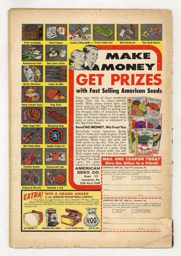 Tags: Superman$39.00Cover pencils by Curt Swan, inks by Stan Kaye. The Man Who Married Lois Lane, script by Robert Bernstein, pencils by Wayne Boring, inks by Stan Kaye; X-Plam comes from the future to marry Lois Lane. The Secret of Kryptonite!, script by Jerry Coleman, art by Al Plastino; The story of how the world discovered the effect that Kryptonite has on Superman. The Super-Clown of Metropolis!, script by Jerry Siegel, art by Al Plastino; Sad Sam will give a billion dollars to charity to the person who can make him laugh. 36 Pages, Full Color. Cover price $0.10.