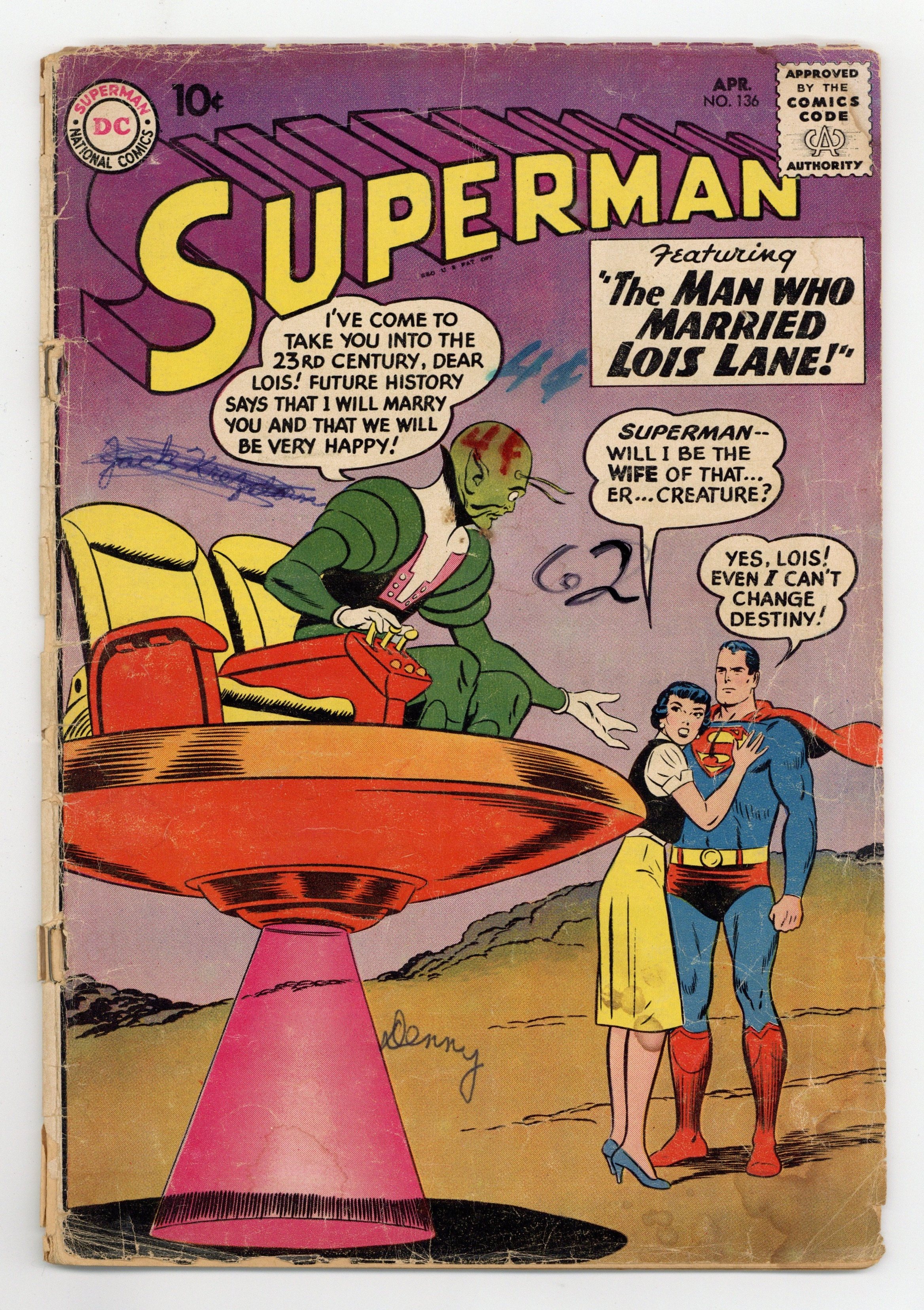 Cover pencils by Curt Swan, inks by Stan Kaye. The Man Who Married Lois Lane, script by Robert Bernstein, pencils by Wayne Boring, inks by Stan Kaye; X-Plam comes from the future to marry Lois Lane. The Secret of Kryptonite!, script by Jerry Coleman, art by Al Plastino; The story of how the world discovered the effect that Kryptonite has on Superman. The Super-Clown of Metropolis!, script by Jerry Siegel, art by Al Plastino; Sad Sam will give a billion dollars to charity to the person who can make him laugh. 36 Pages, Full Color. Cover price $0.10.